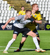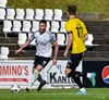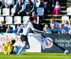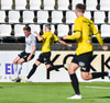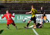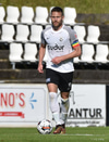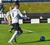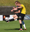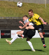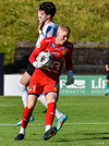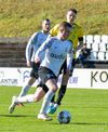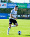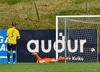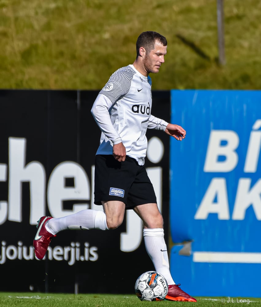 Gísli Laxdal kemur sér í skotfæri en dregur boltann fram hjá markinu. Færið leit vel út en það var engin hætta af þessu skoti.