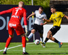 Úlfur Ágúst í færi til að bæta við þriðja markinu en Aron Bjarki gerir vel að henda sér fyrir skotið.