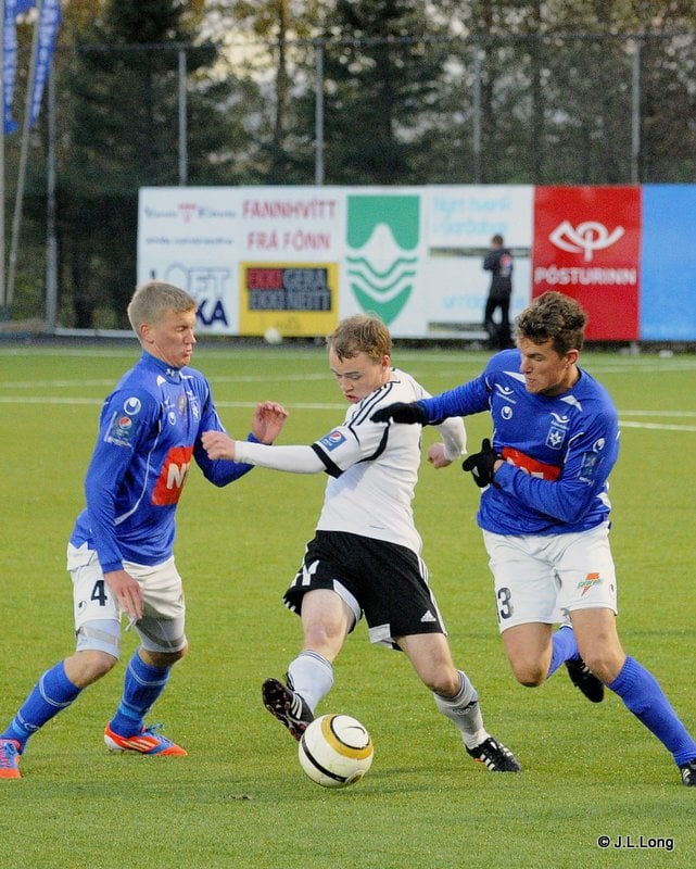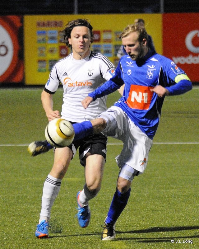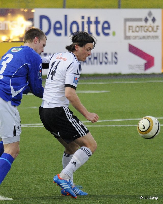 Freyr Bjarnason með groddalega tæklingu á Atla Jóhannsson. Heppinn að fá ekki spjald. Halldór Orri Björnsson tók aukaspyrnuna en framhjá fór boltinn.