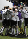 Doninger kom boltanum inn af mjög stuttu færi og jafnar.