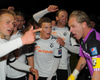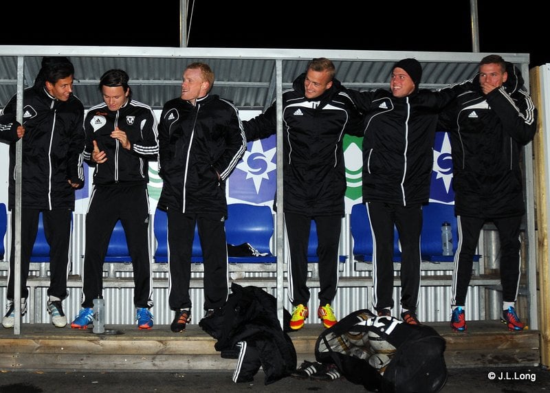 Stemningin er góð hér á Samsung-vellinum. Gunnleifur Gunnleifsson er í uppáhalds treyjunni sinni, þeirri bleiku.
