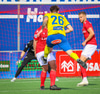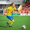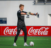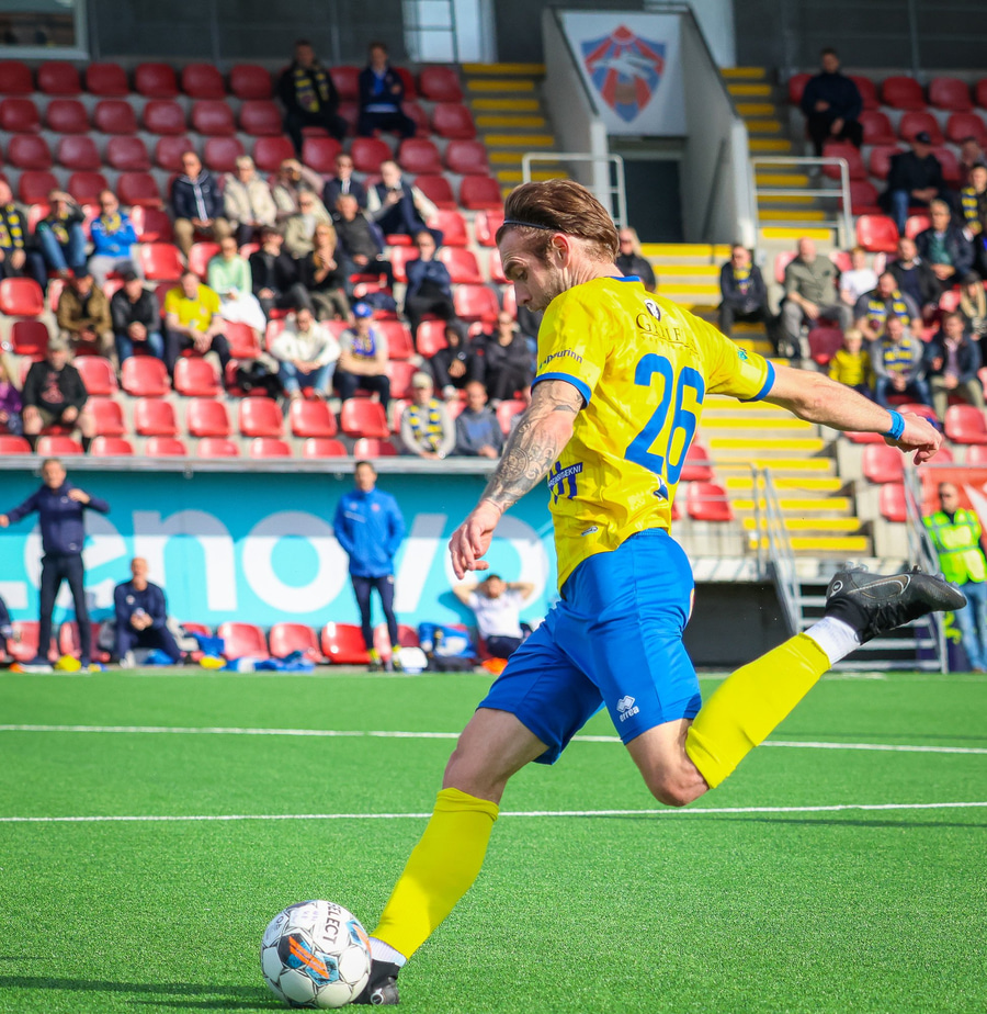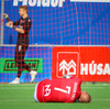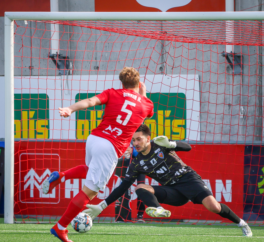 Frederik grípur spyrnuna frá Hallgrími.