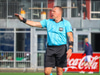 Pétur lyftir upp rauðu spjaldi.
