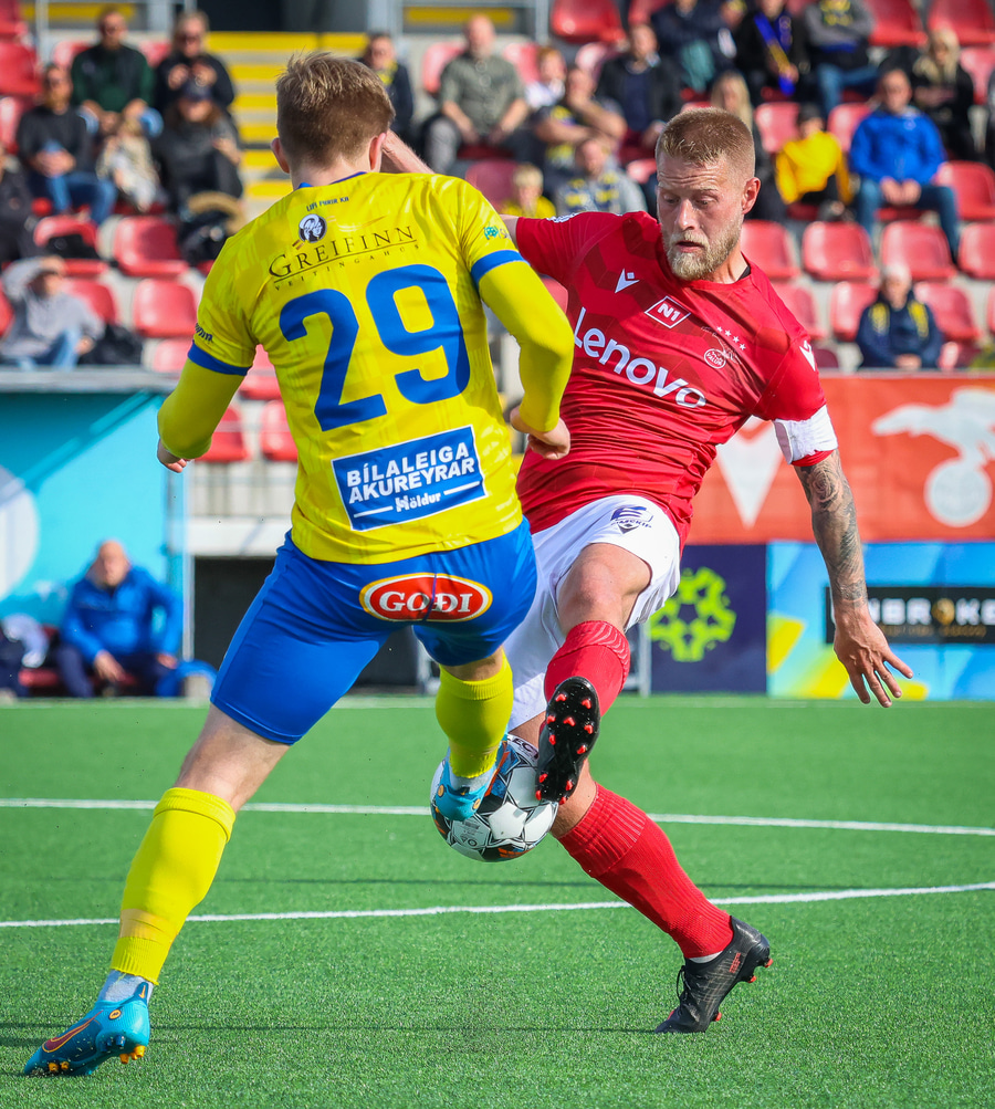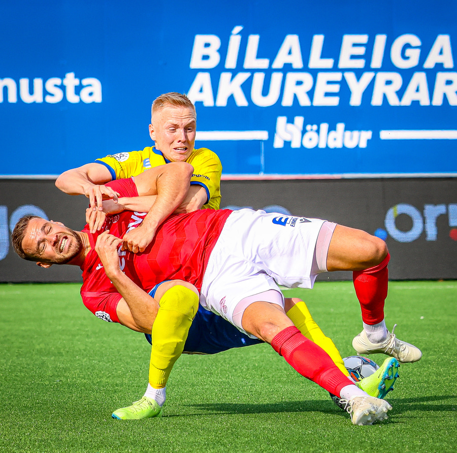 Náði ekki að stöðva leikmann KA og sókn gestanna hélt áfram eftir hagnað.
