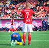 Jajalo er staðinn upp og teygir aðeins á hægri fæti. Leikurinn fer aftur af stað.