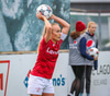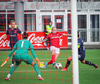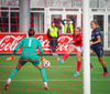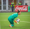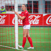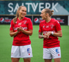 Sandra í markinu lítur mjög vel út í markinu í þessari upphitun, er í hörkustuði. Það er engin að skora fram hjá henni. Vonandi verður það þannig áfram.
