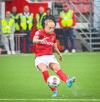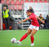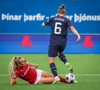 Þórdís Elva með tilraun af 20 metrunum sem fer fram hjá markinu. Ekki galin tilraun.