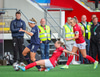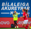 Lillý fer niður í teignum og er heppin að gefa ekki vítaspyrnu. Munaði ekki miklu að hún færi í manninn.