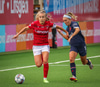 Slavia byrjar af miklum krafti og kemur hátt upp með liðið. Surnovska reynir strax skot en Arna Sif kemur sér fyrir. Slavia fær svo aukaspyrnu á góðum stað.