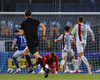 Óskar brýtur á Dalugge sem er sloppinn í gegn Víti og rautt