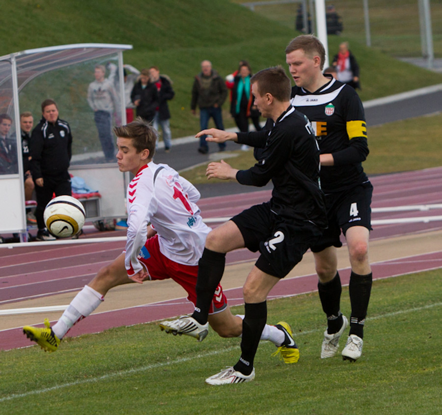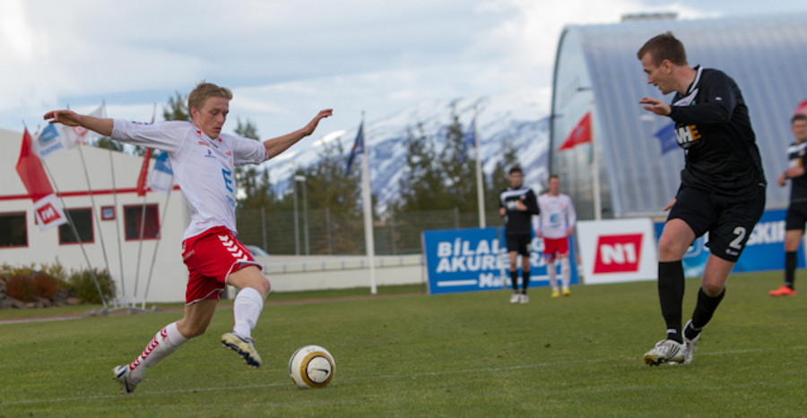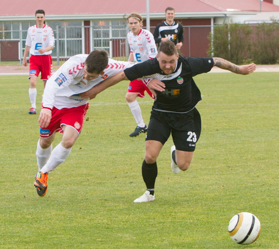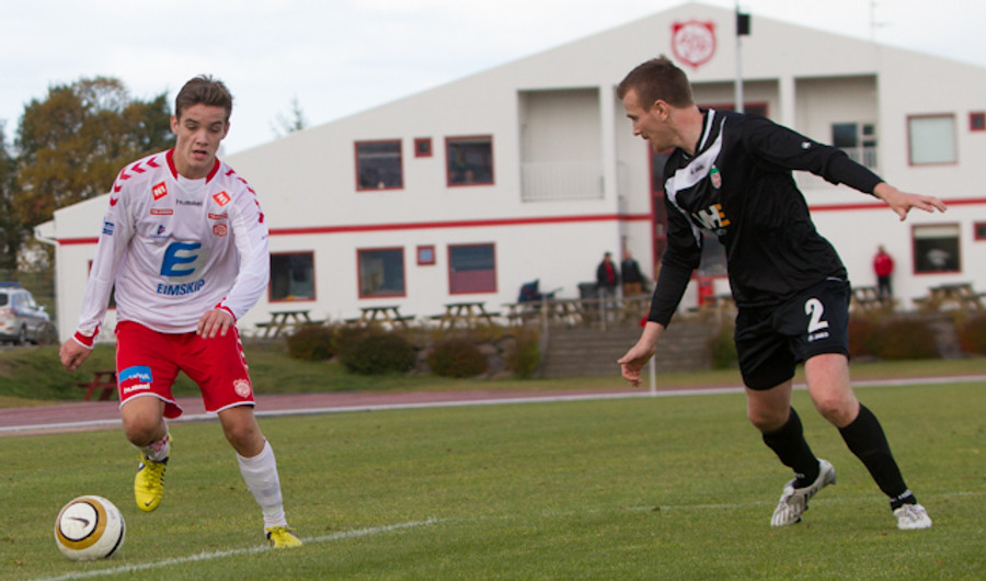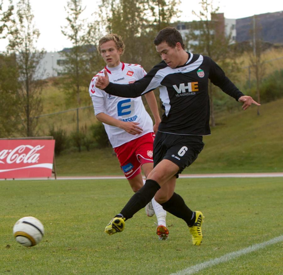 Garðar Már Grétarsson með skot rétt fyrir utan teig sem fer framhjá, munaði litlu.