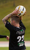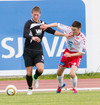Sveinn Elías kemst í ágætis skotfæri á hægri vængnum en Bajkovic ver frá honum. Nokkuð skemmtilegt að markmenn dagsins heita Rajkovic og Bajkovic