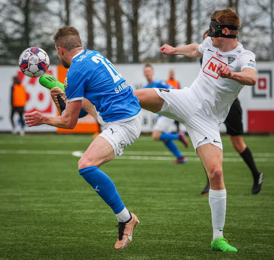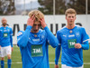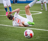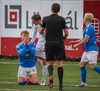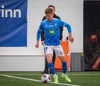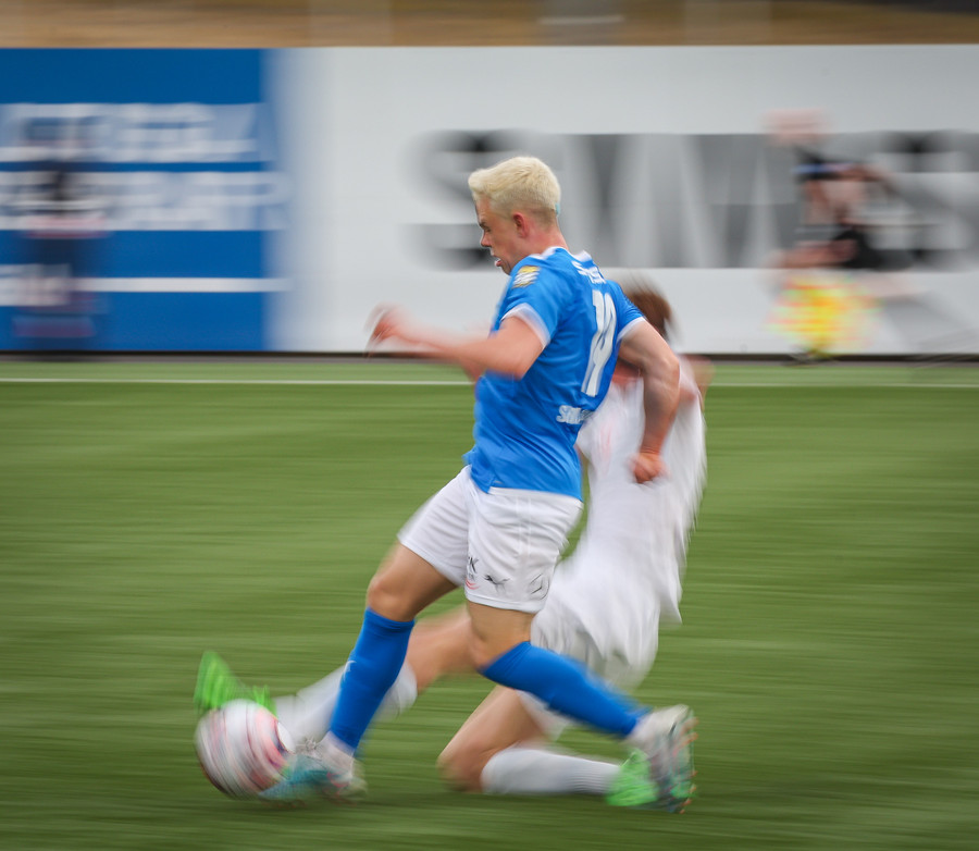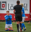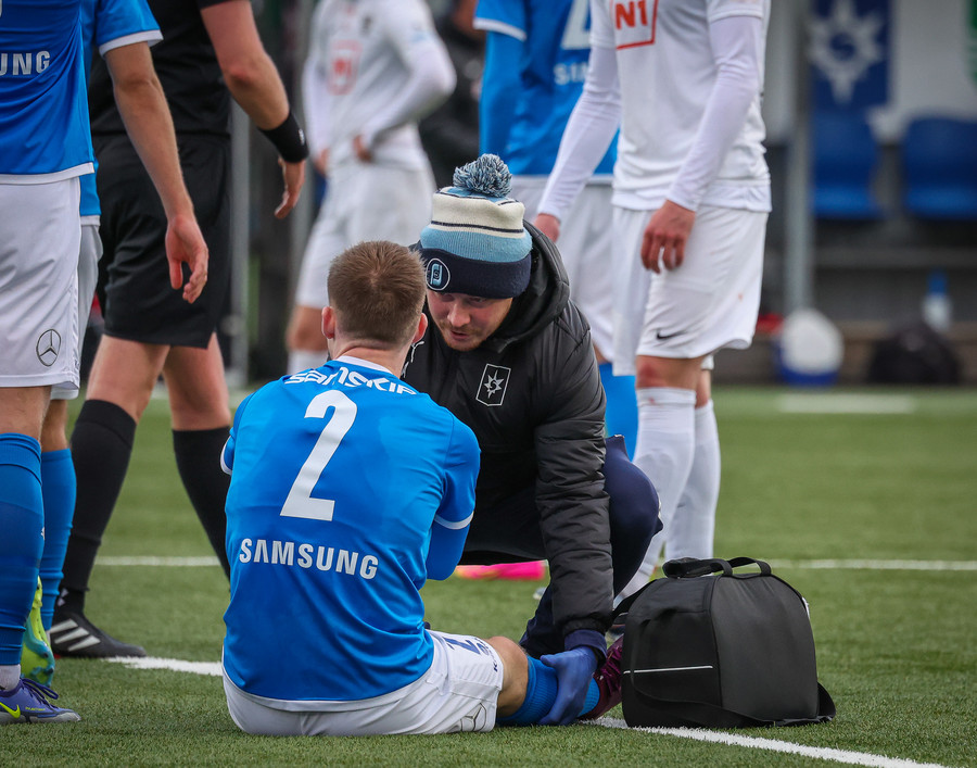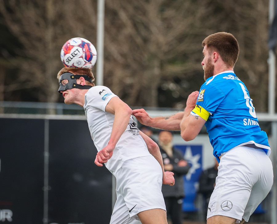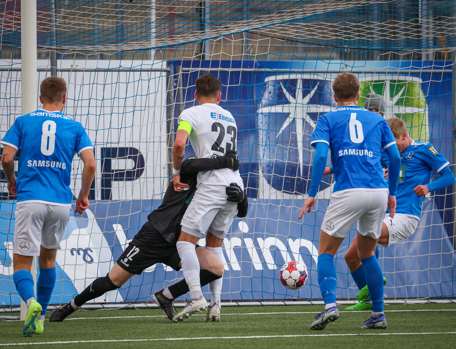 Leikurinn stöðvaður þar sem Sindri og Bjarki hoppa upp í skallabolta en enda á að skalla hvorn annan í stað boltans. Þeir standa báðir upp á endanum og virðast ætla að halda áfram leik.