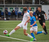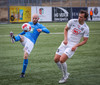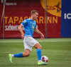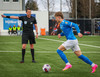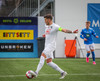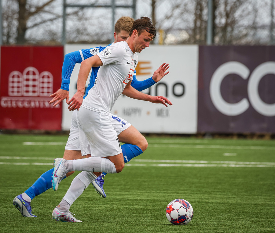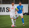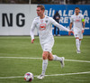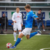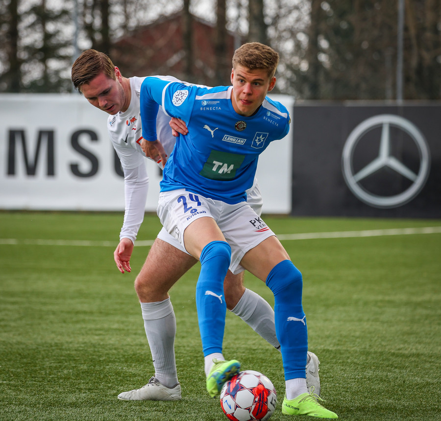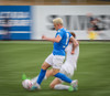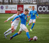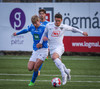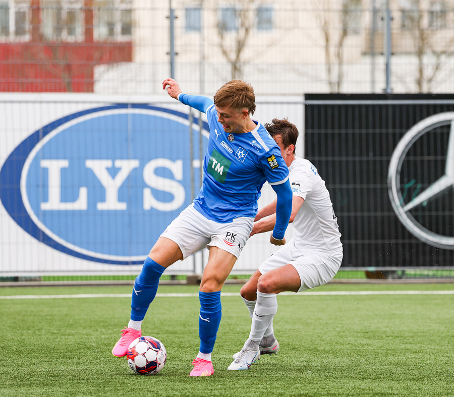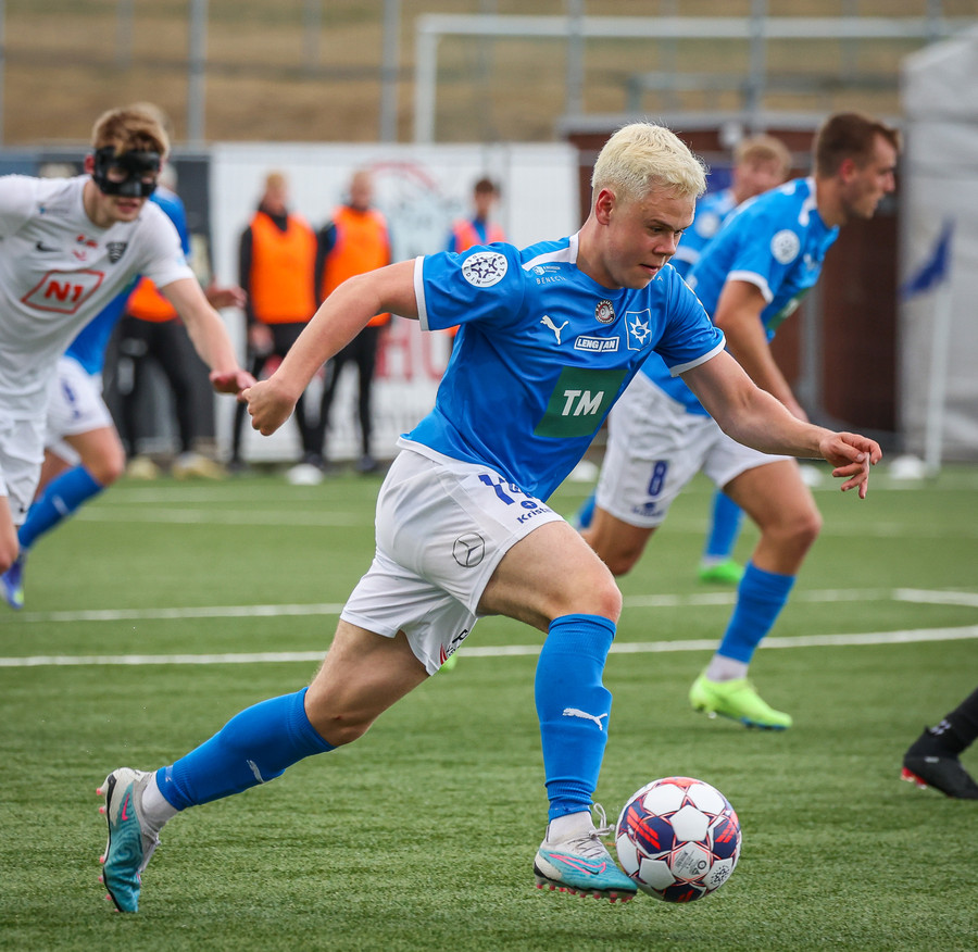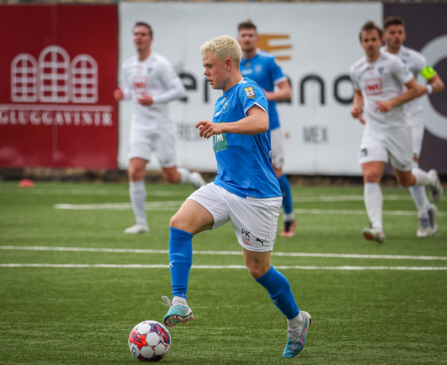 Kjartan hleypur upp vinstri kantinn og gerir mjög vel í að fara framhjá einum og setja svo boltan fyrir.
