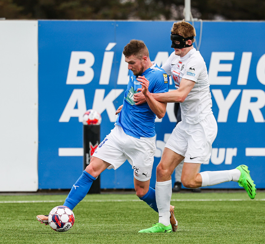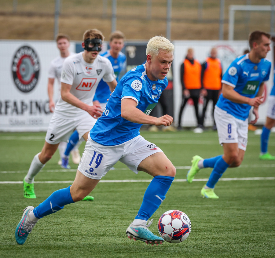 Örvar og Ísak spila virkilega vel saman upp vinstri kantinn og ná að búa til hálffæri fyrir Ísak en hann skýtur yfir markið.
