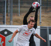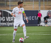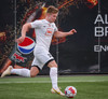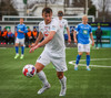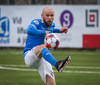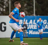 Bjarki tekur spyrnuuna en hún er skölluð frá.