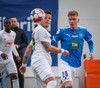 Eggert gerir vel í að færa boltan upp völlin og kemur svo með frábæra sendingu á Ísak sem er sloppinn í gegn. Ísak stígur svo út einn varnarmanninn og tekur skotið sem er á leiðinni í niður í hornið en Jón Kristinn ver vel.