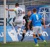 Boltinn kemur inn í teig þar sem Sindri fær að skalla á markið alveg óáreittur og klárar í markið.