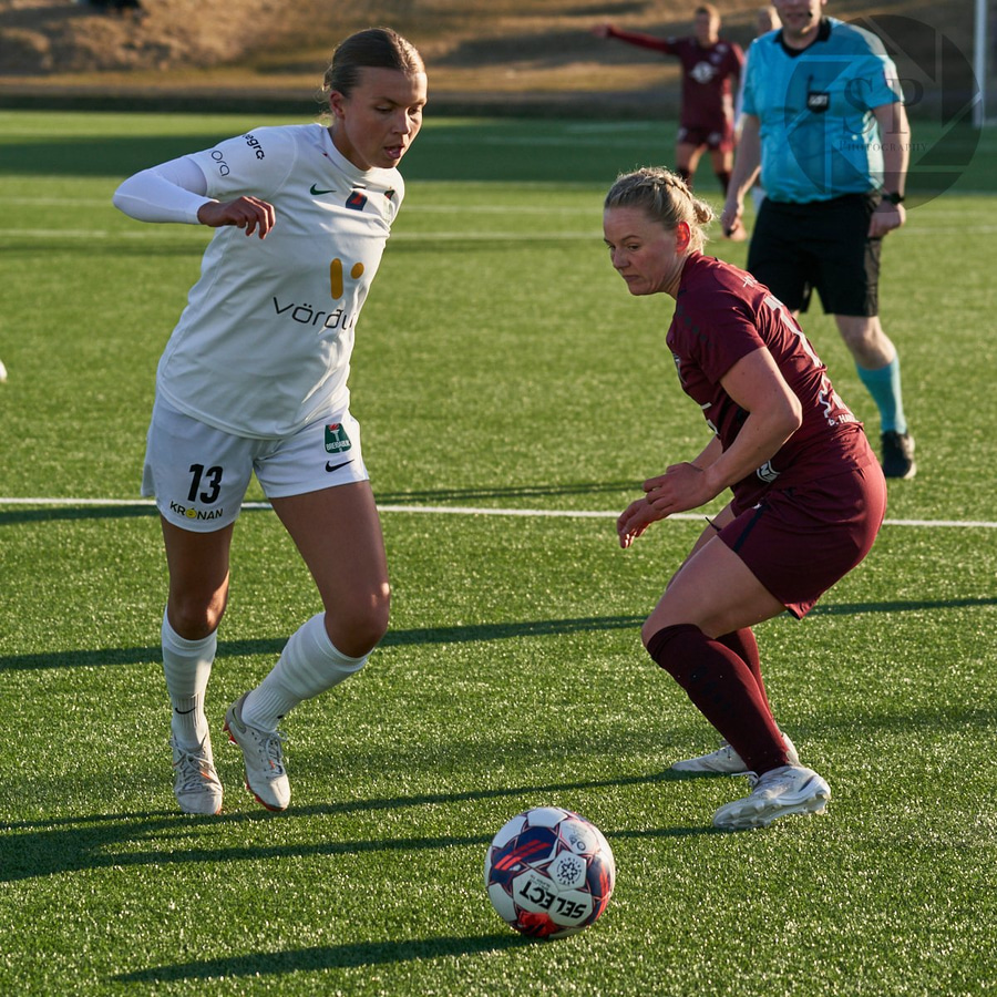 Toni með fínan kross yfir á Vigdísi sem setur boltann á Ástu sem reynir fyrirgjöf sen Hugrún kemst með fótinn fyrir og boltinn endar í hornspyrnu