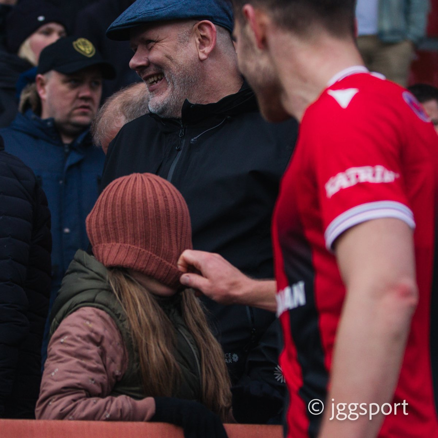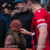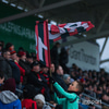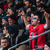 Þétt setið í stúkunni í dag og bæði lið með glommu af stuðningsmönnum í stúkunni.