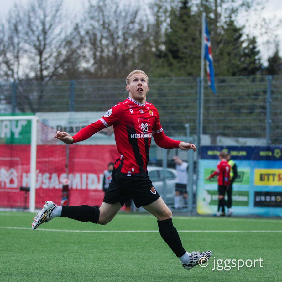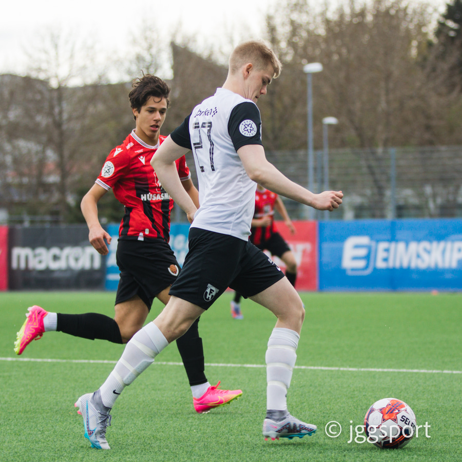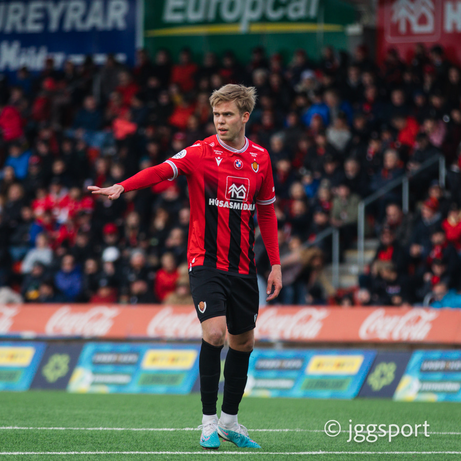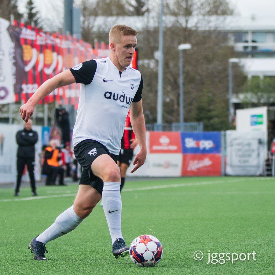 Nikolaj sendir boltann út á kantinn á Birni Snæ sem lætur bara vaða. Skotið fast en er beint á Sindra og þarna verður hann einfaldlega að gera mun betur.