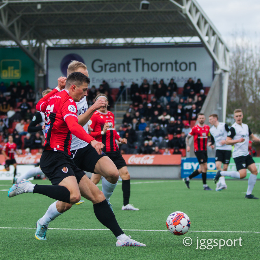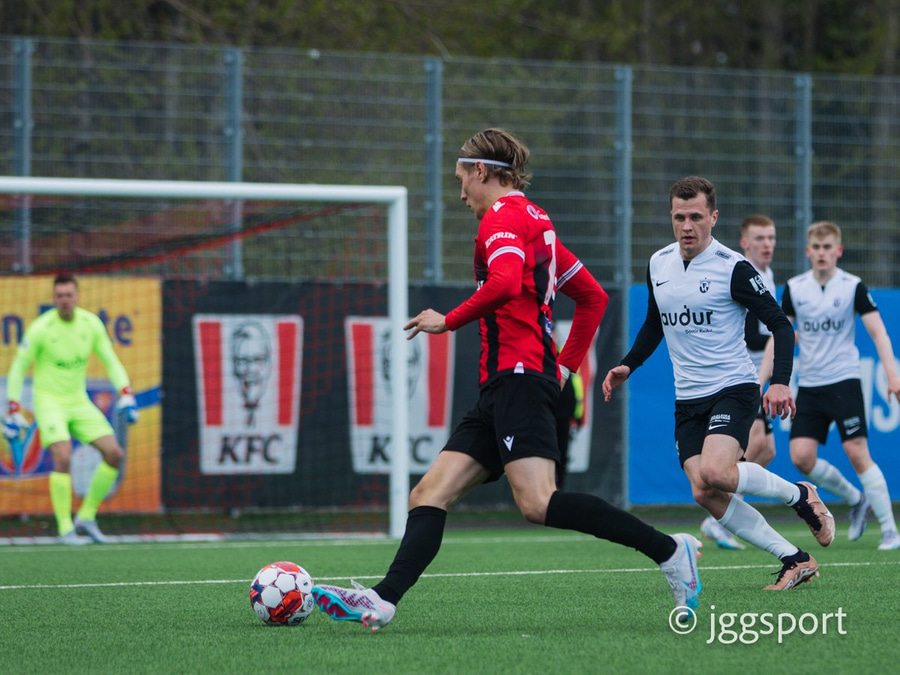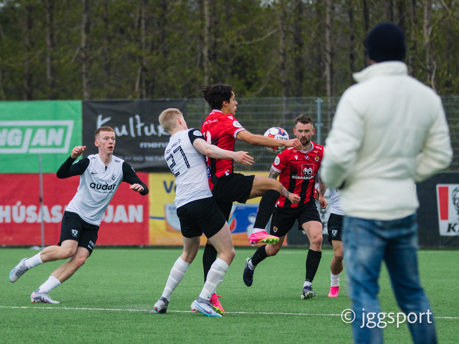 Gunnar Vatnhamar með myndarlegan sprett upp miðjan völlinn en Dani Hattaka bjargar á ögurstundu.