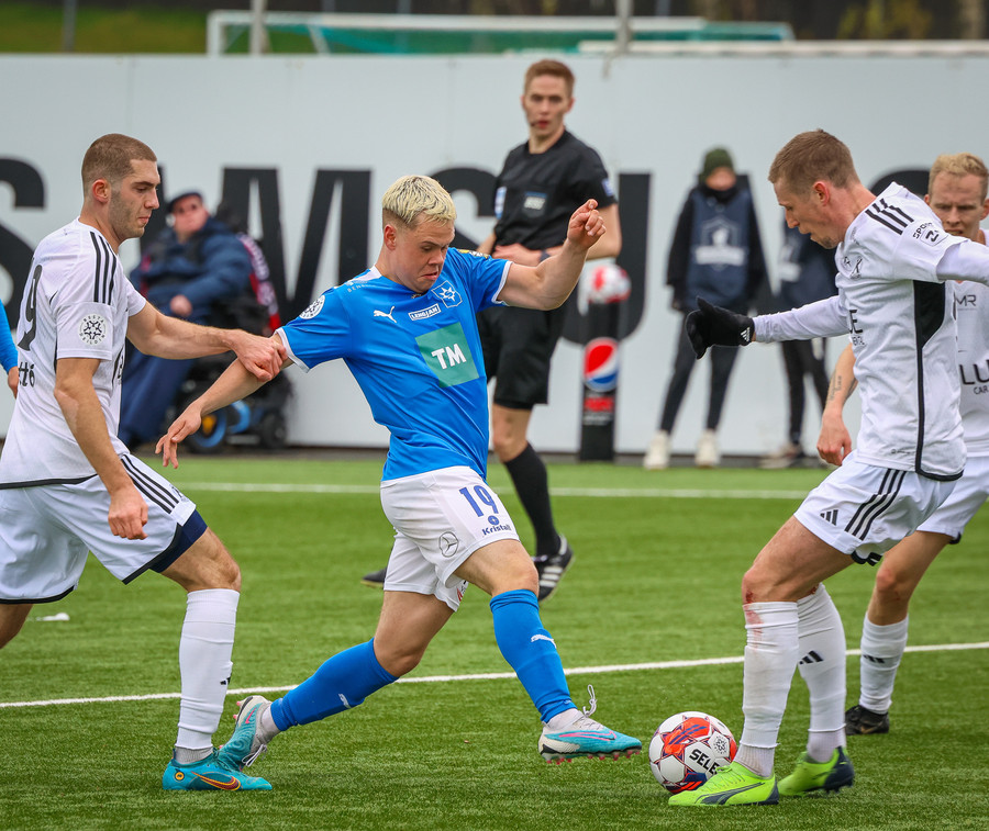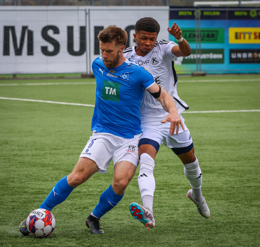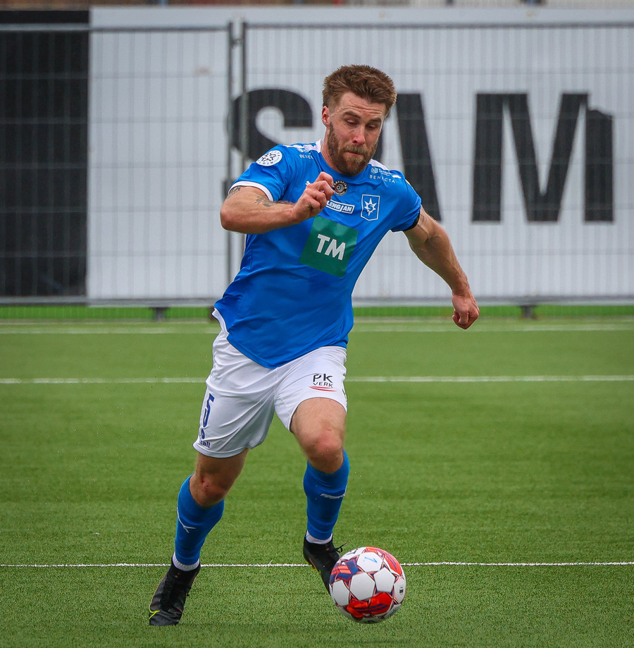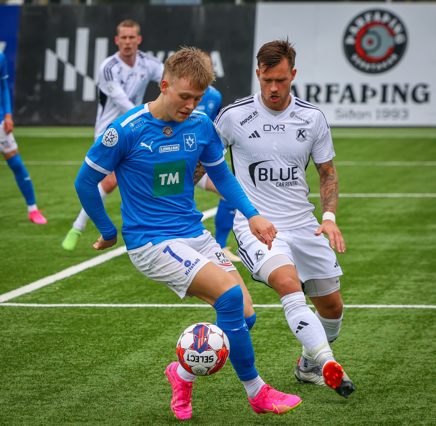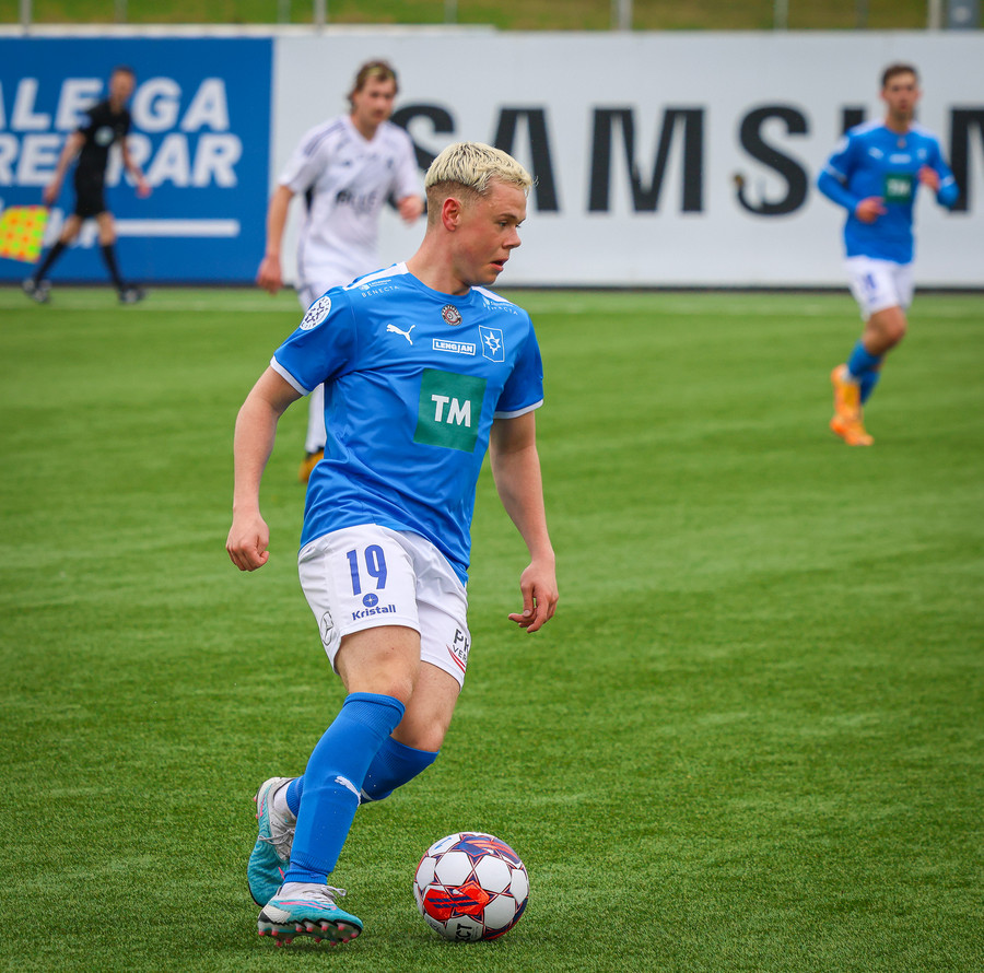 Edon Osmani með flottan 20 metra sprett upp völlinn en á slaka sendingu ætlaða M. Blair, gott tækifæri fyrir Keflvíkinga!