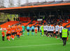 Fylkismenn hófu leik. KR-ingar leika í átt að Árbæjarlauginni í fyrri hálfleik.