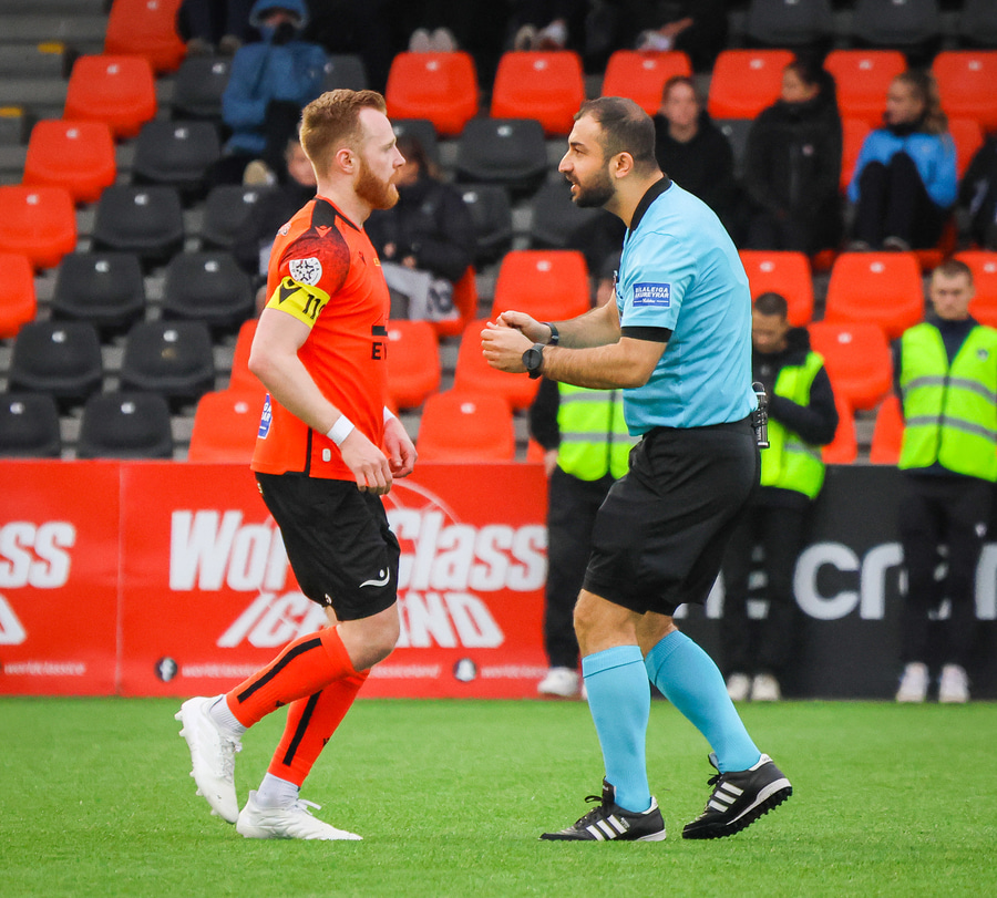 Einar Ingi fer meiddur af velli og inn kemur varadómarinn Twana Khalid Ahmed. Hans fyrsti leikur í efstu deild.