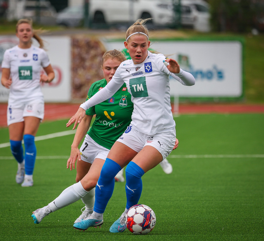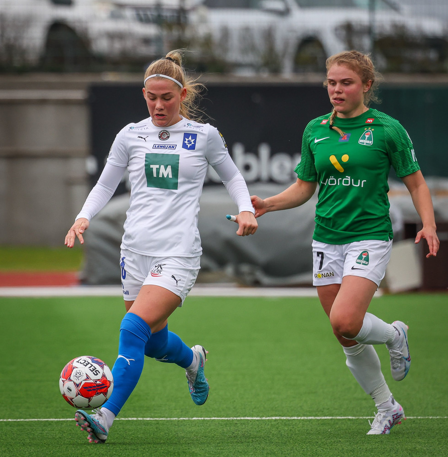 Úlfa Dís gerir vel og er komin í teiginn í afbragðsstöðu hún ætlar að gefa boltann út en Bergþóra kemst fyrir boltann og kemur hættunni frá.