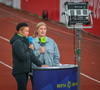 Agla María heiðruð með blómvendi fyrir að hafa náð því merkilega afreki að spila 150 leiki með Breiðablik á dögunum!