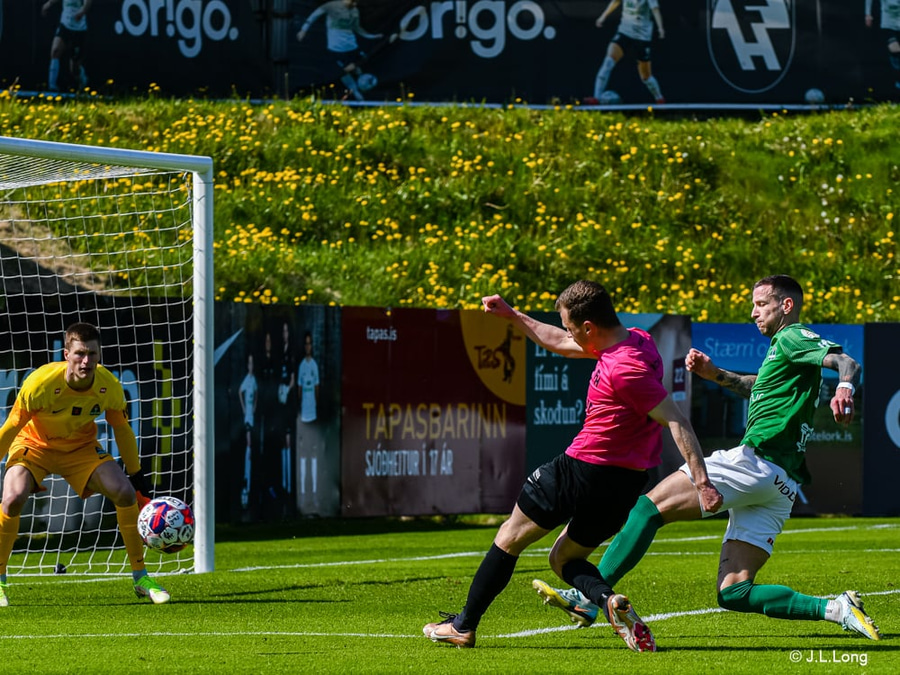 Klæmint Olsen setur boltann í slánna!