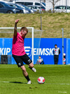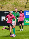 Fær boltann á teignum og ætlar að setja boltann yfir Anton Ara en boltinn fer rétt yfir markið.