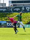 Kjartan Kári tekur spyrnuna inn á teiginn og Ólafur Guðmunds nær skallanum en boltinn yfir.