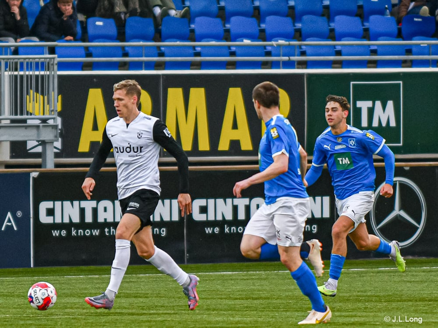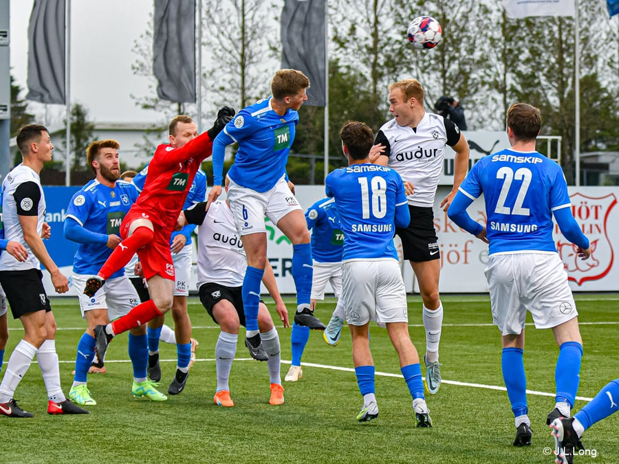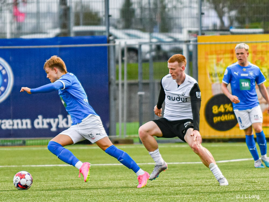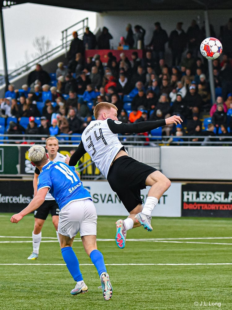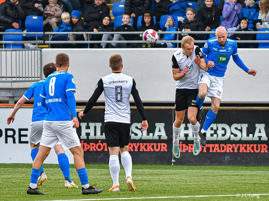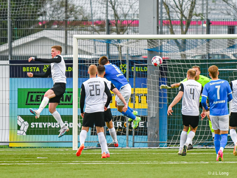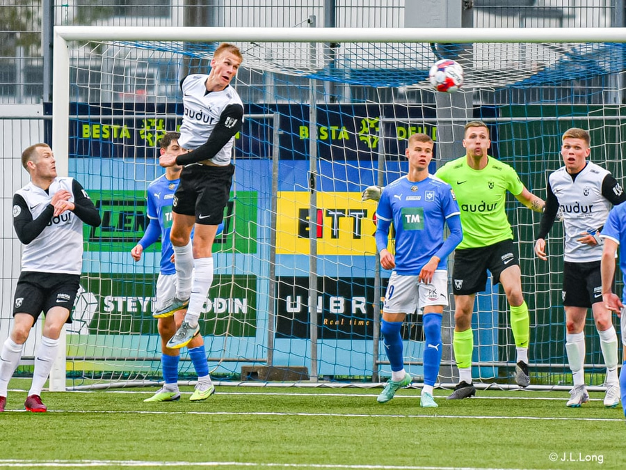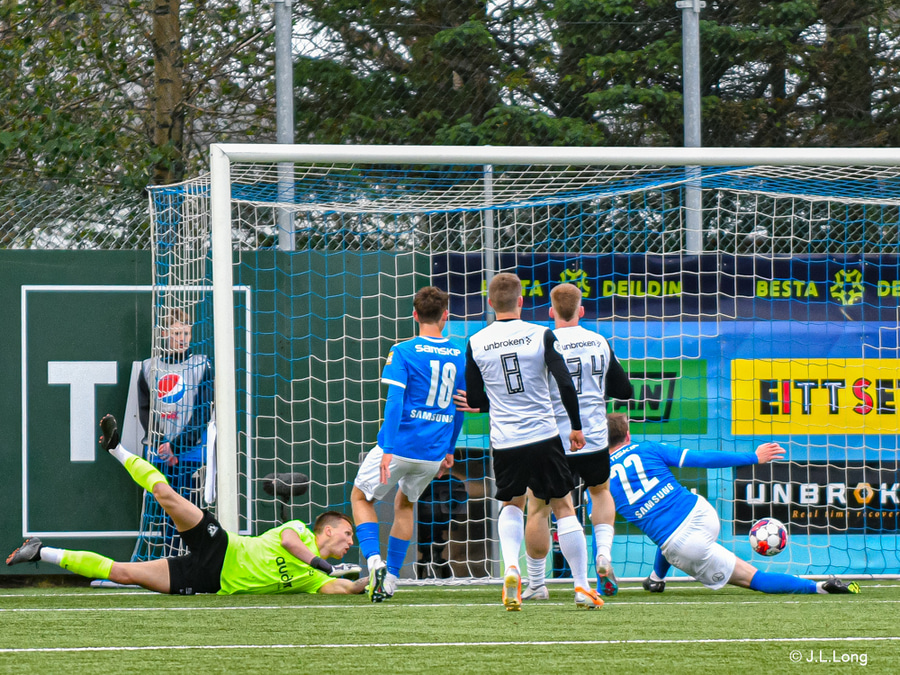Örvar lyftir honum upp vinstri kantinn beint á Ísak. Ástbjörn verulega áhugalaus í vörninni og Ísak gerir vel og klárar í fjærhornið.