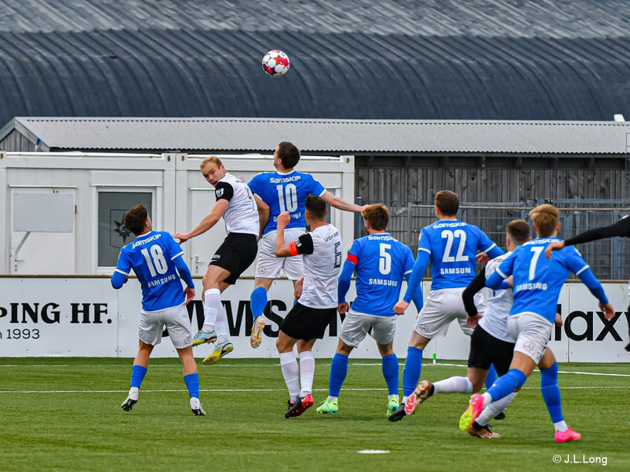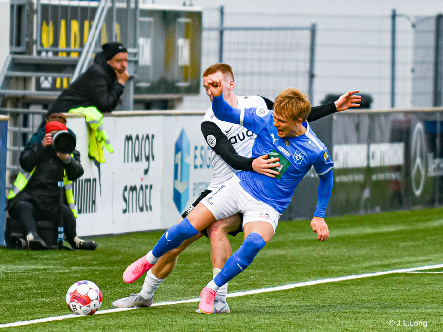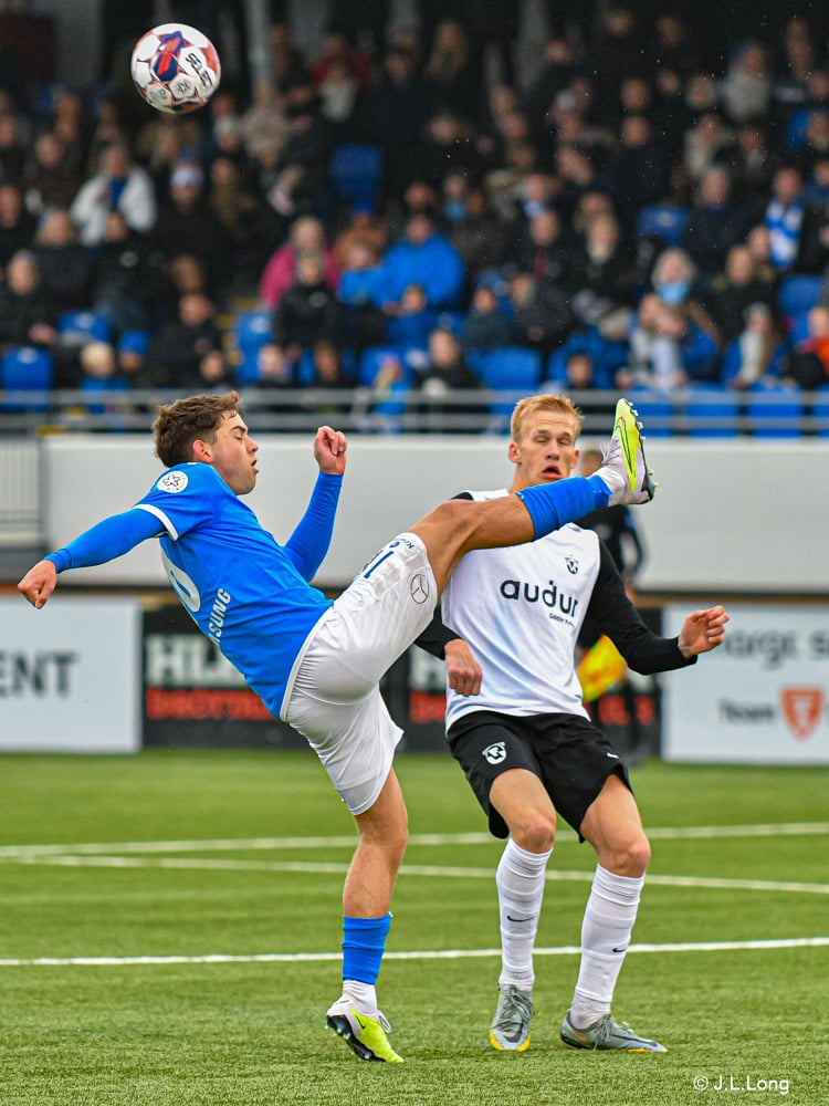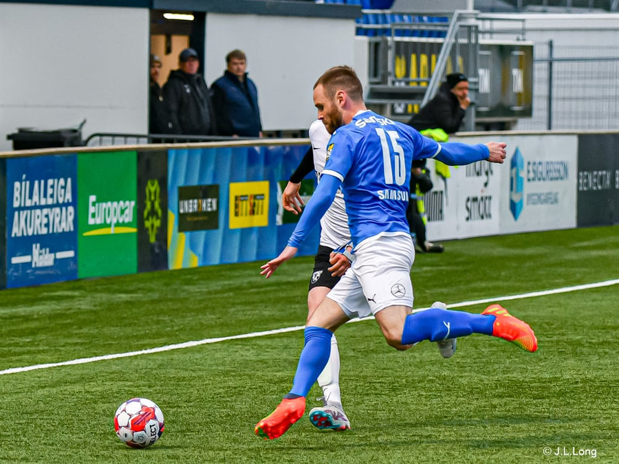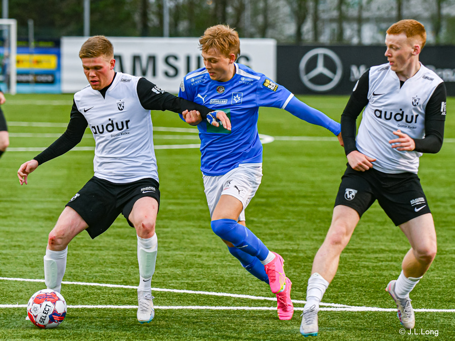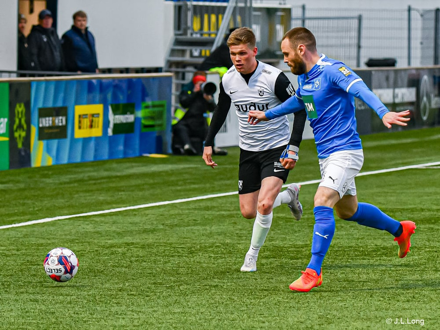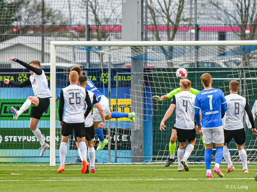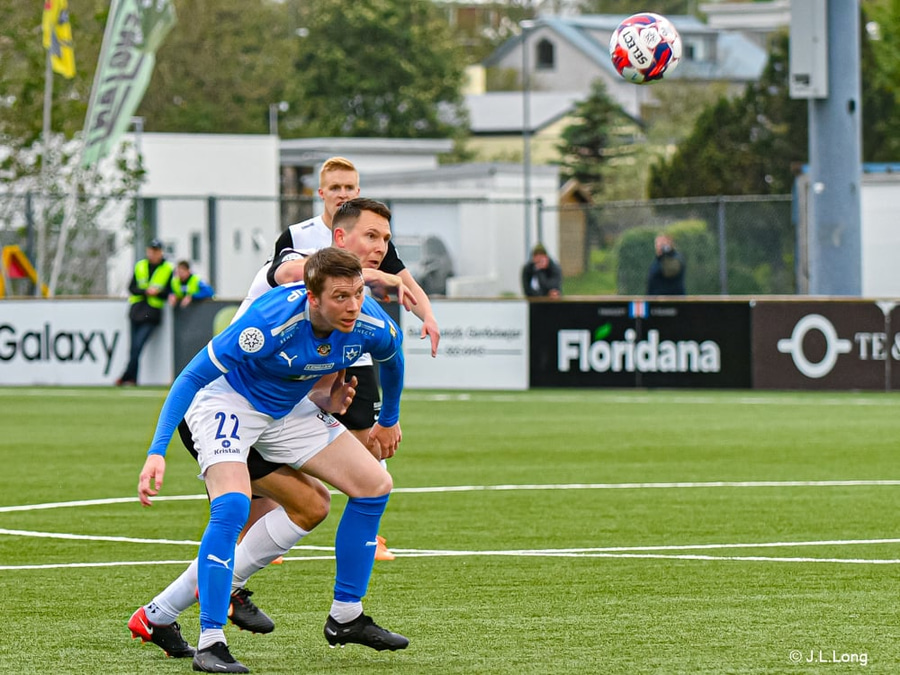 Örvar lyftir honum upp vinstri kantinn beint á Ísak. Ástbjörn verulega áhugalaus í vörninni og Ísak gerir vel og klárar í fjærhornið.