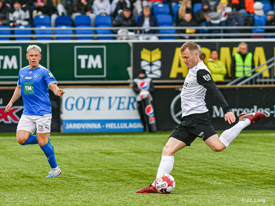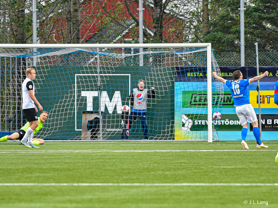 Ísak Leikur sér að Kjartani Kára og Ástbirni og leggur hann snyrtilega á Gumma Baldvin sem kemur boltanum á Örvar sem kemur með fyrirgjöf þar sem Eggert tekur við honum og leggur hann í hornið!