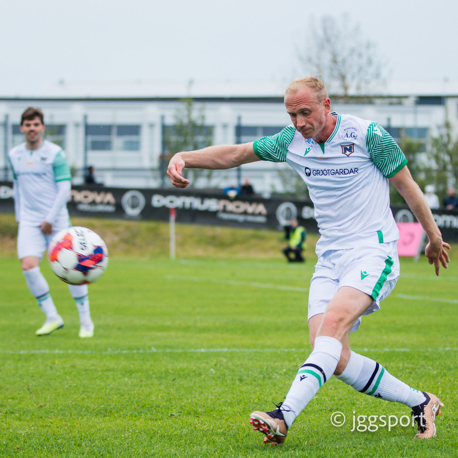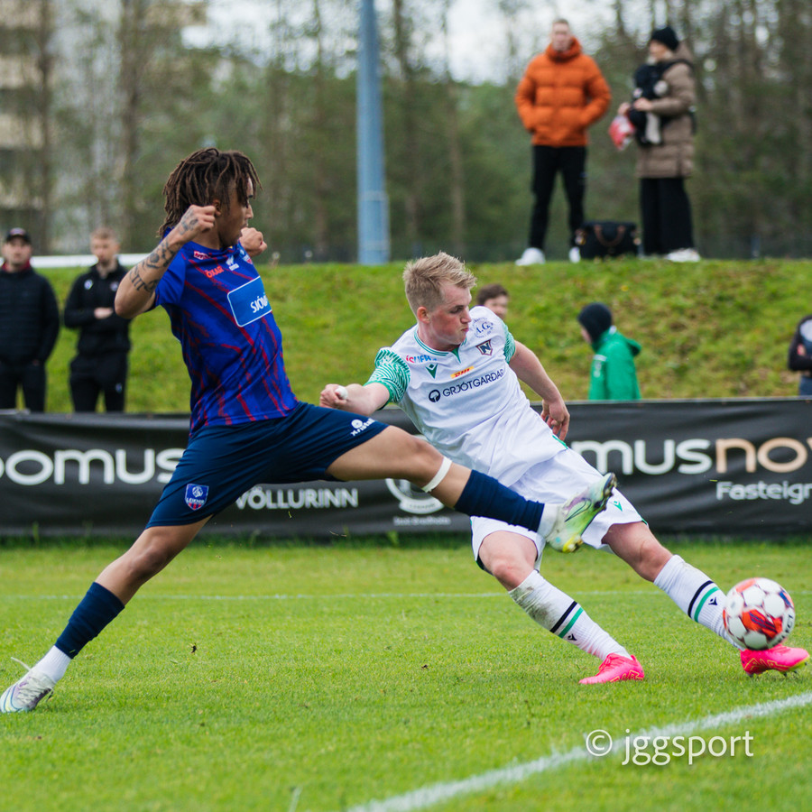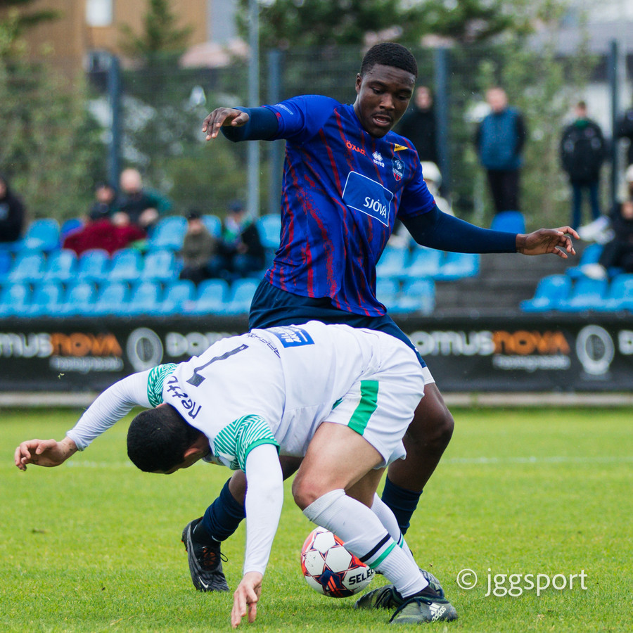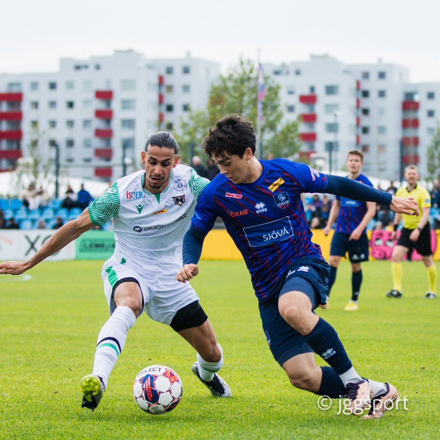 Njarðvíkingar spyrna fram þar sem Luqman er í baráttunni við Brynjar Hlöðvers í loftinu ... Verður seint talið sanngjörn barátta.