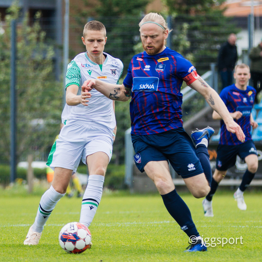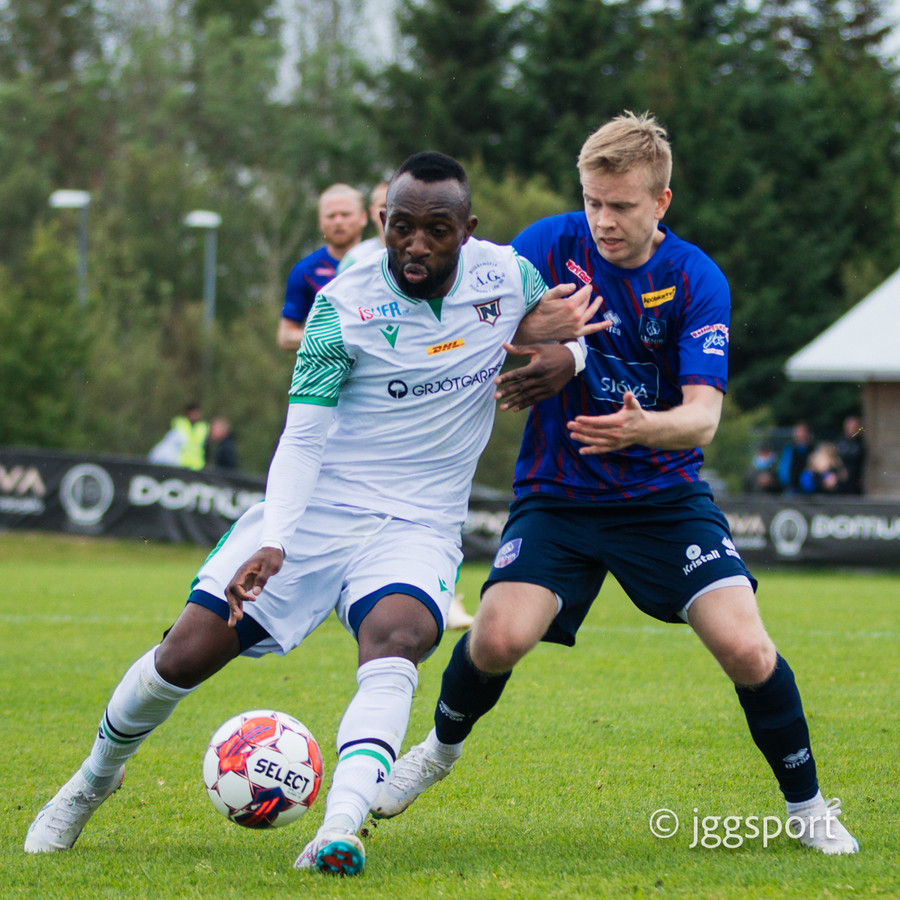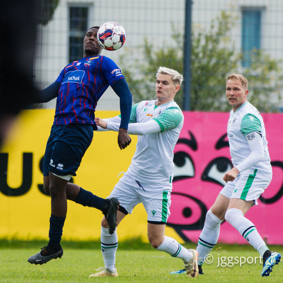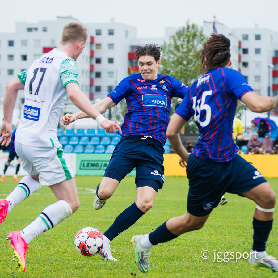 Njarðvíkingar spyrna fram þar sem Luqman er í baráttunni við Brynjar Hlöðvers í loftinu ... Verður seint talið sanngjörn barátta.
