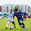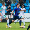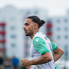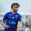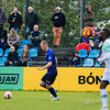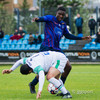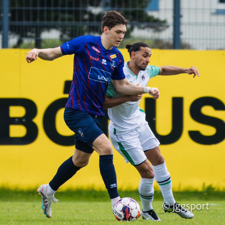 Oumar Diouck virðist ætla að vera ná góðu skoti en Andi Hoti nær að stöðva skotið.
