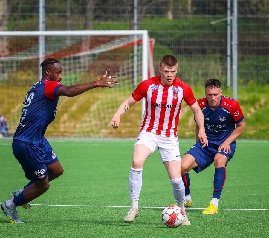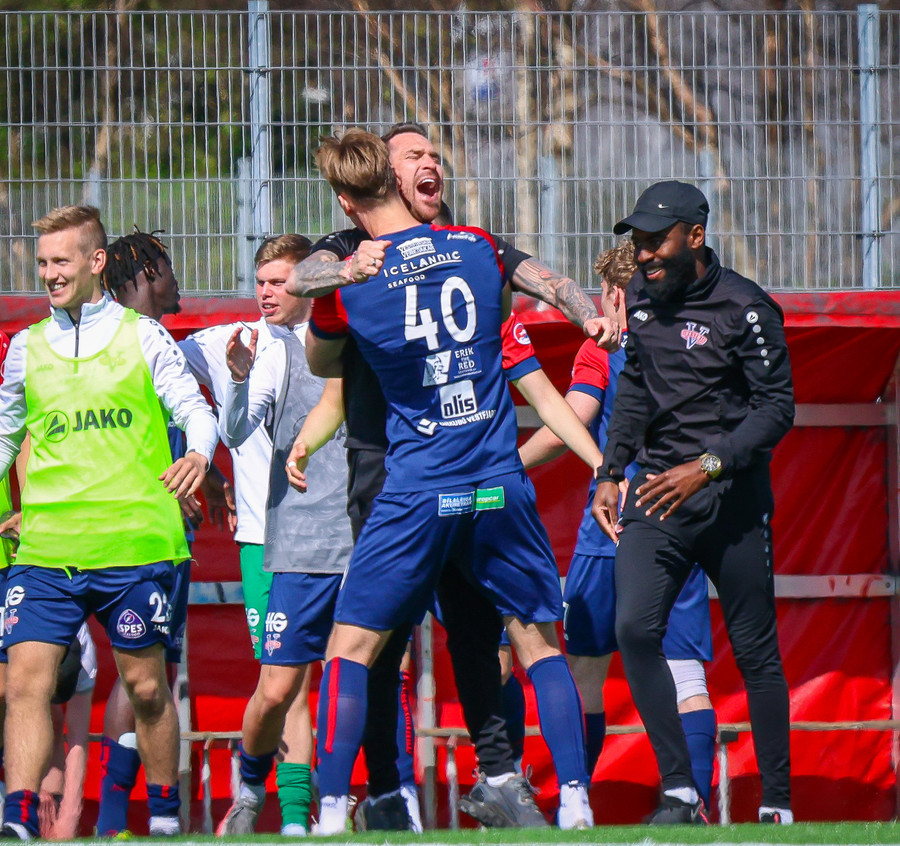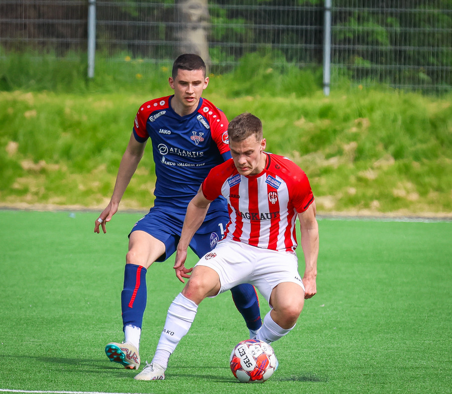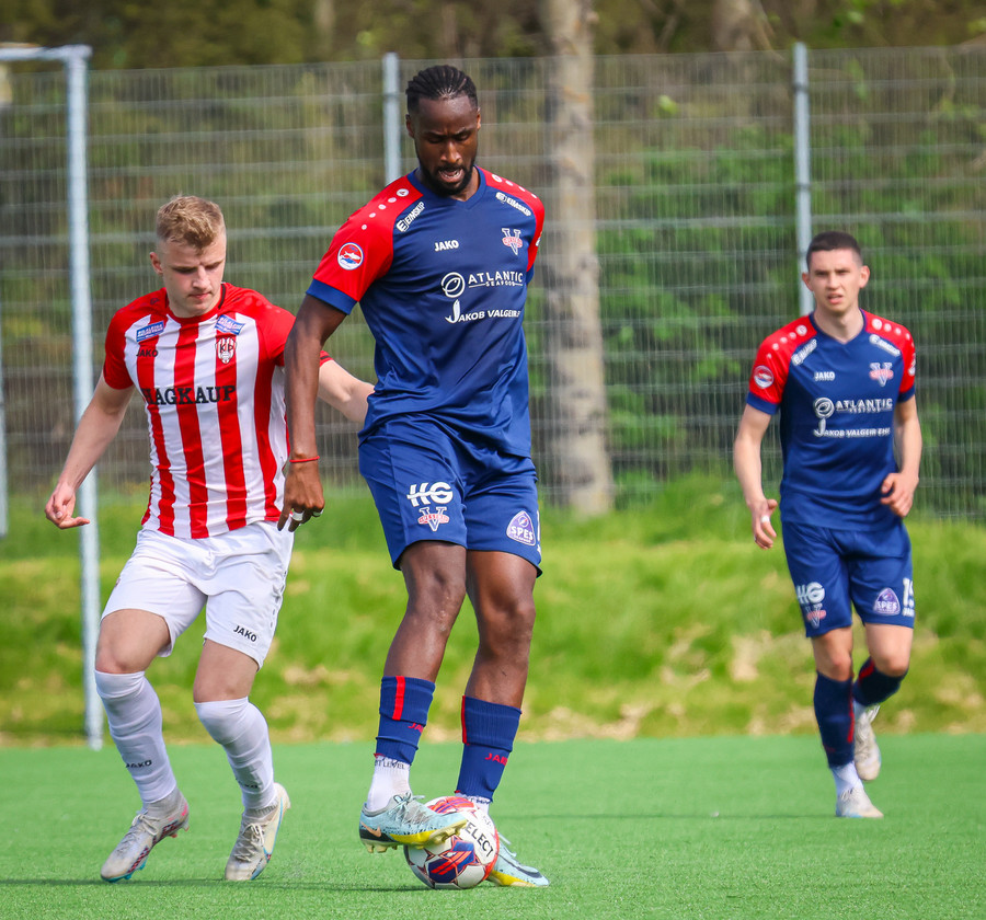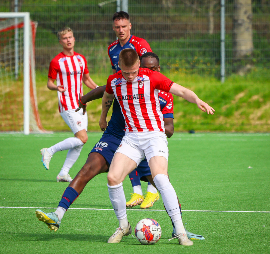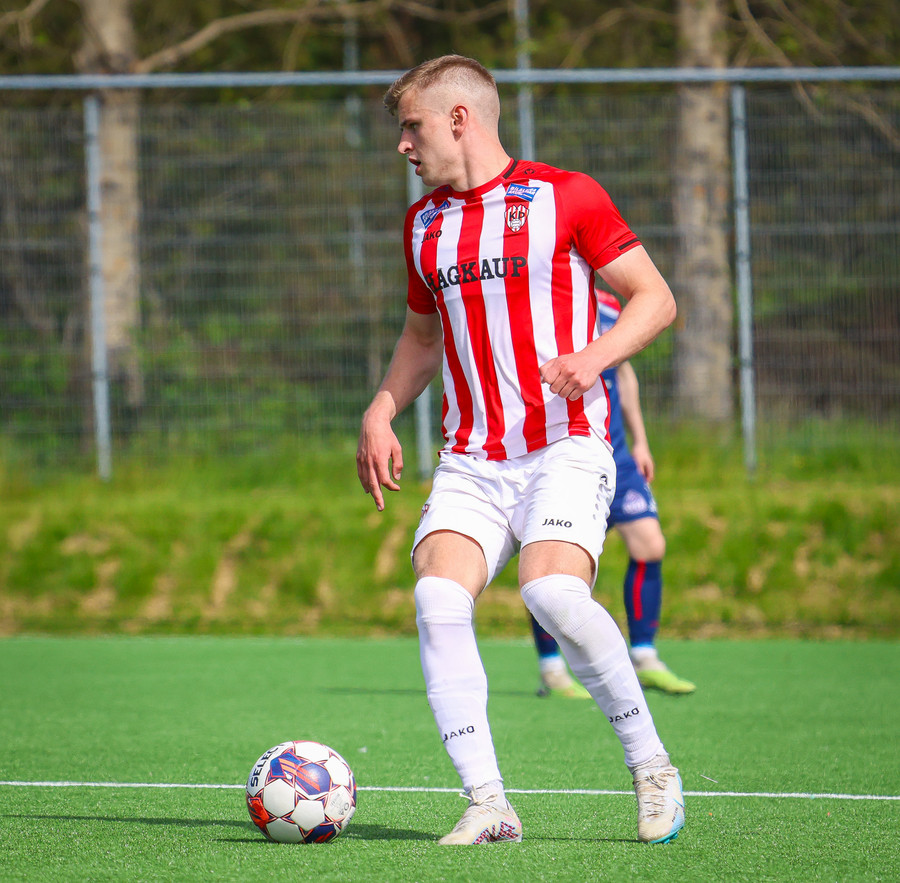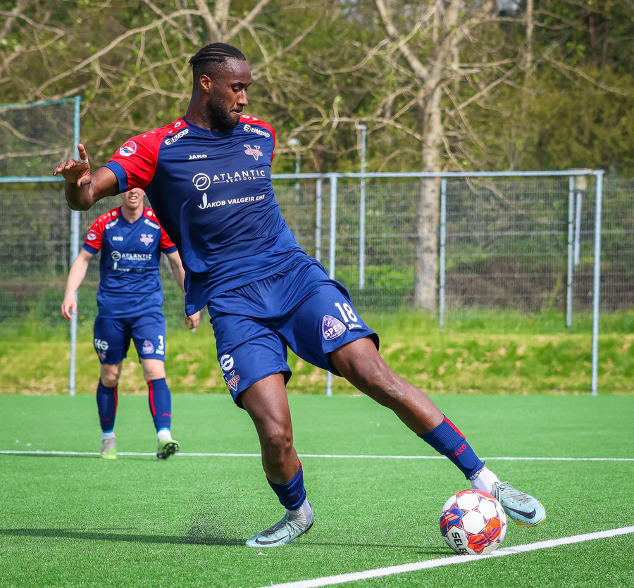 Jörgen gerir vel úti vinstra meginn leggur boltann svo út á Ágúst Karel sem kemur með gull af fyrirgjöf á fjærstöngina þar Aron Snær rís hæst og stangar þetta inn.
