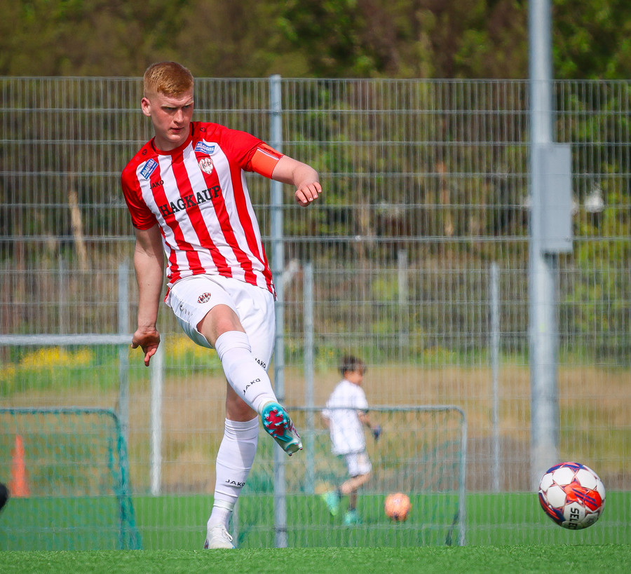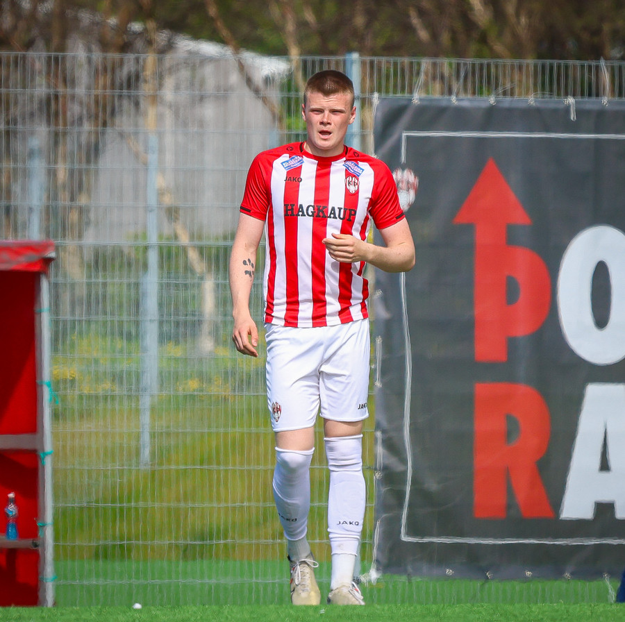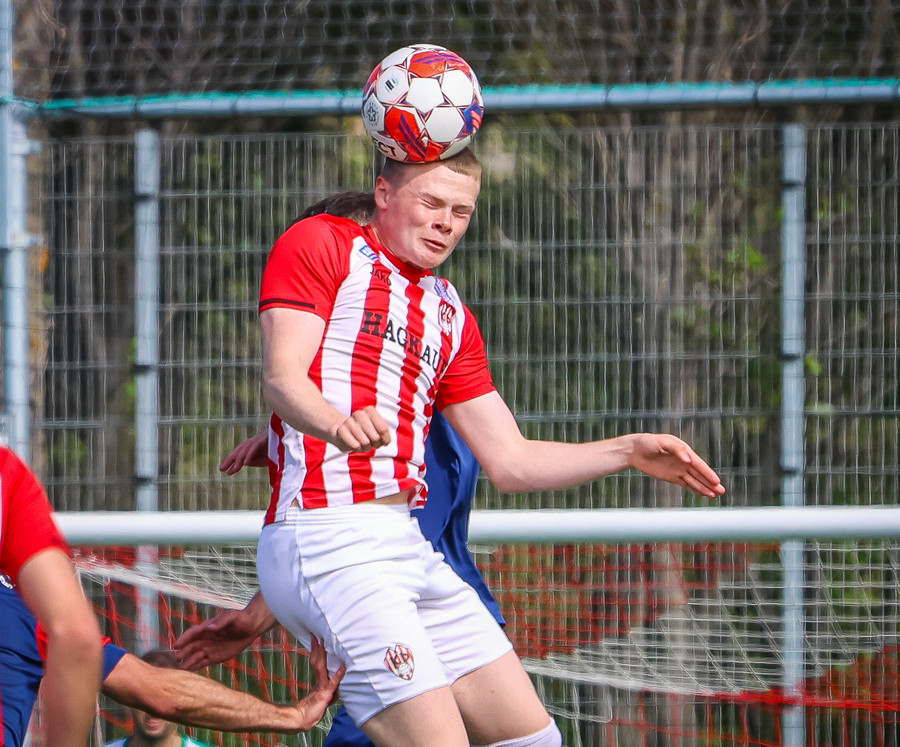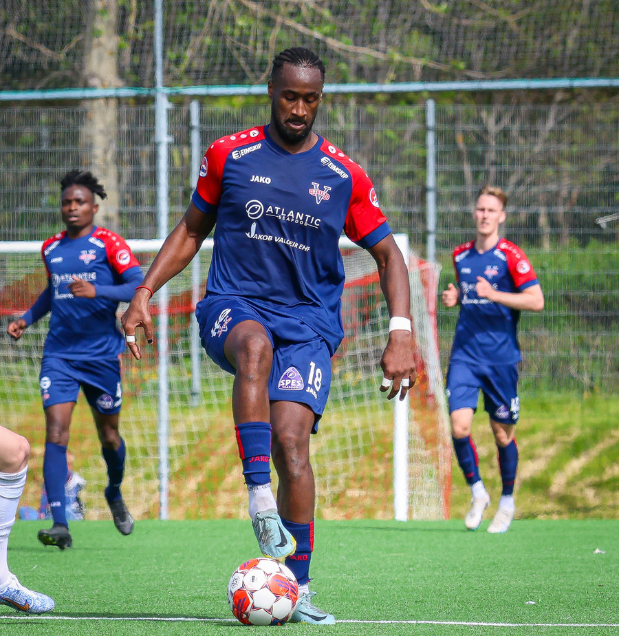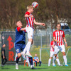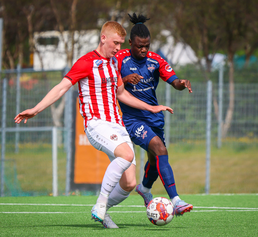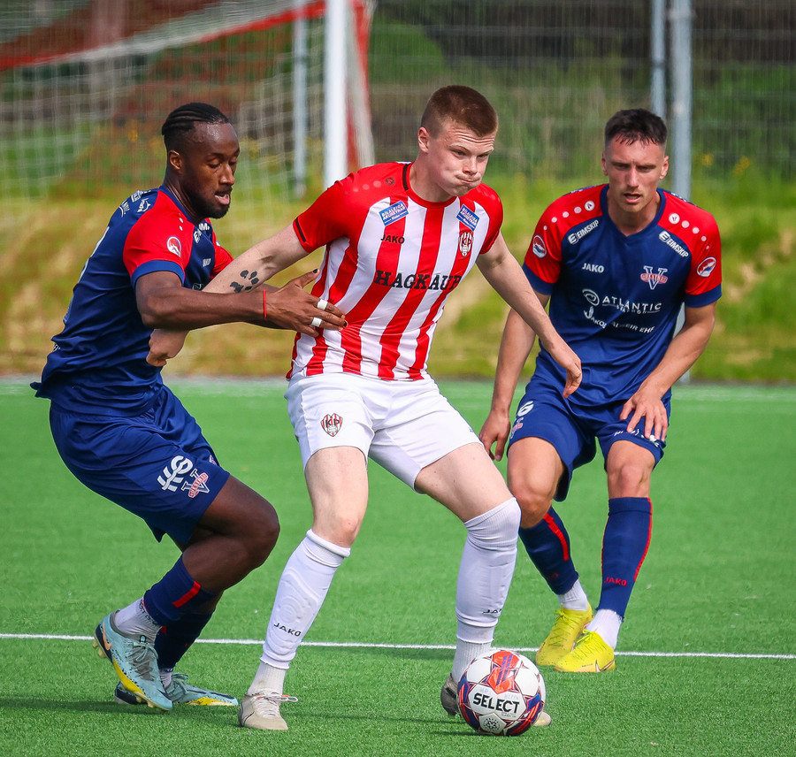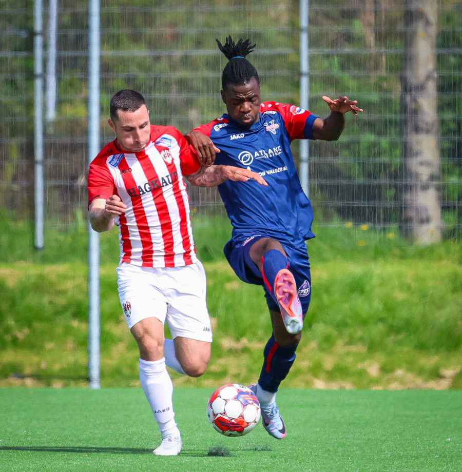 Jörgen gerir vel úti vinstra meginn leggur boltann svo út á Ágúst Karel sem kemur með gull af fyrirgjöf á fjærstöngina þar Aron Snær rís hæst og stangar þetta inn.
