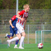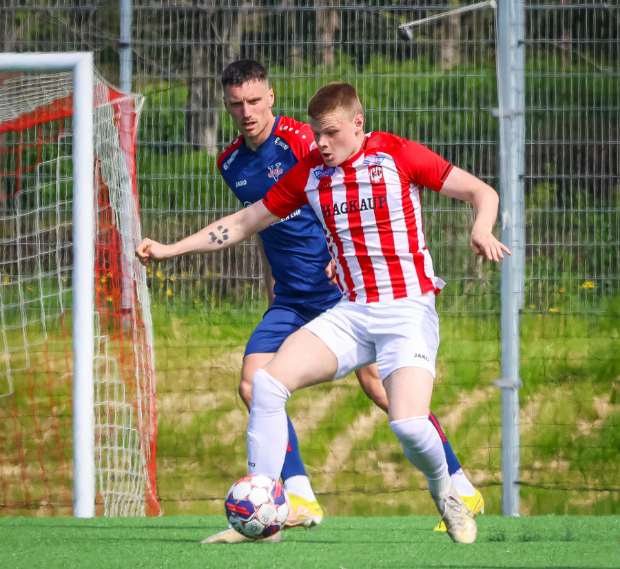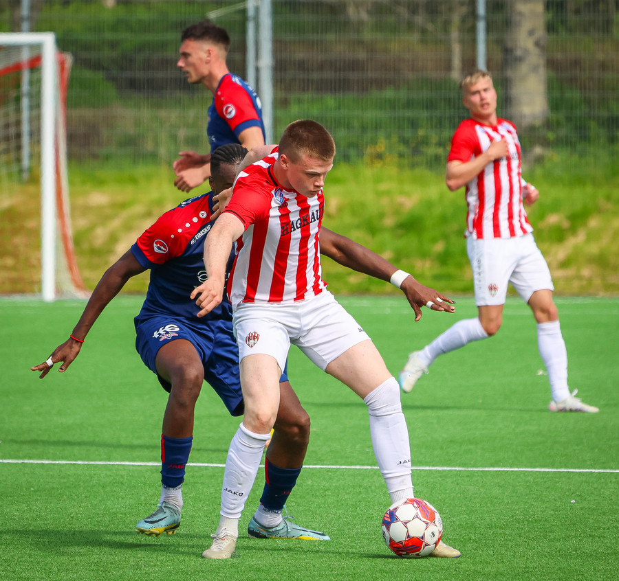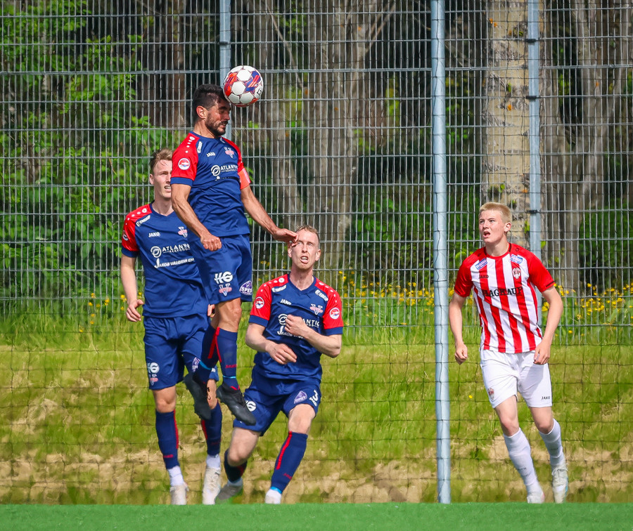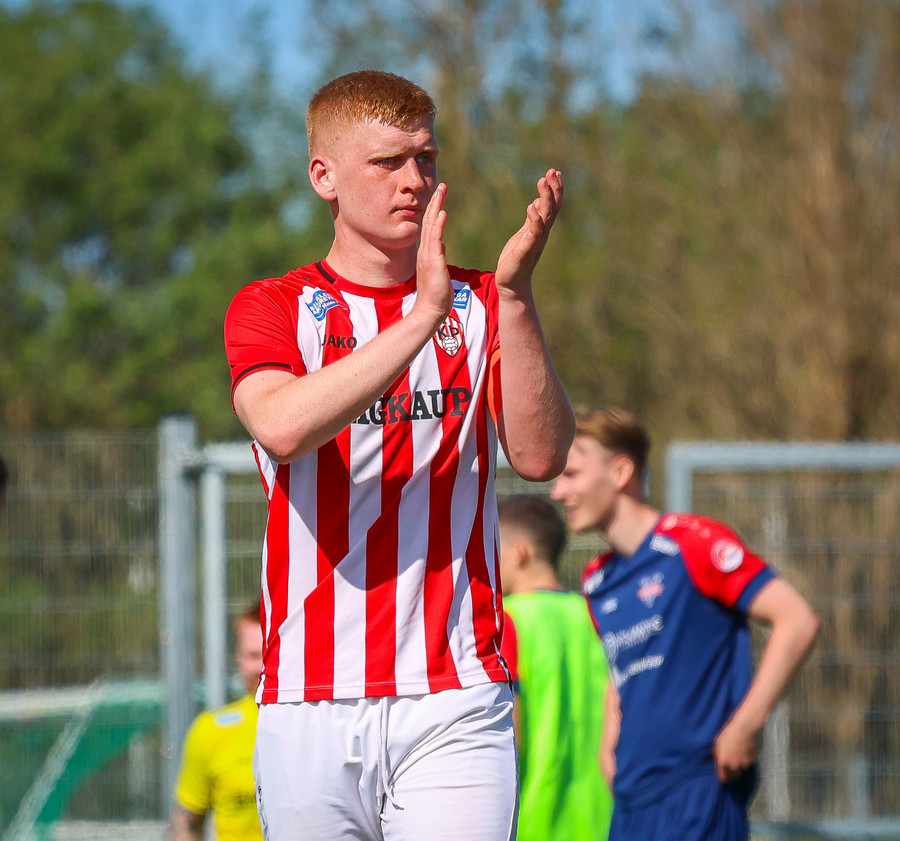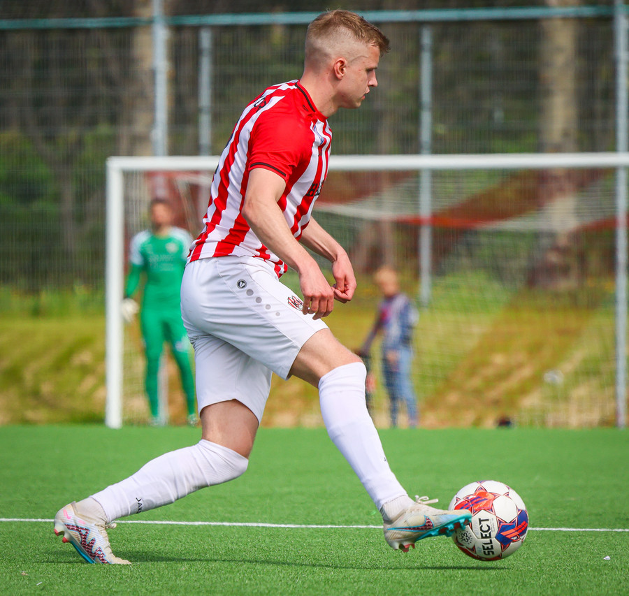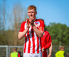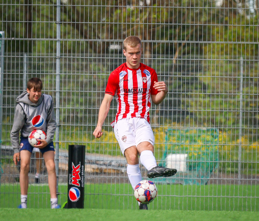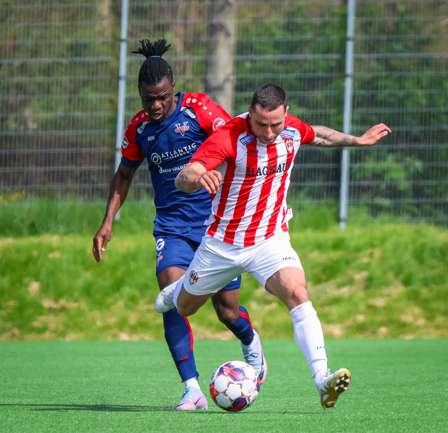 Jörgen gerir vel úti vinstra meginn leggur boltann svo út á Ágúst Karel sem kemur með gull af fyrirgjöf á fjærstöngina þar Aron Snær rís hæst og stangar þetta inn.