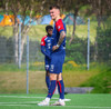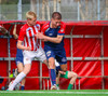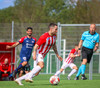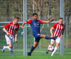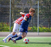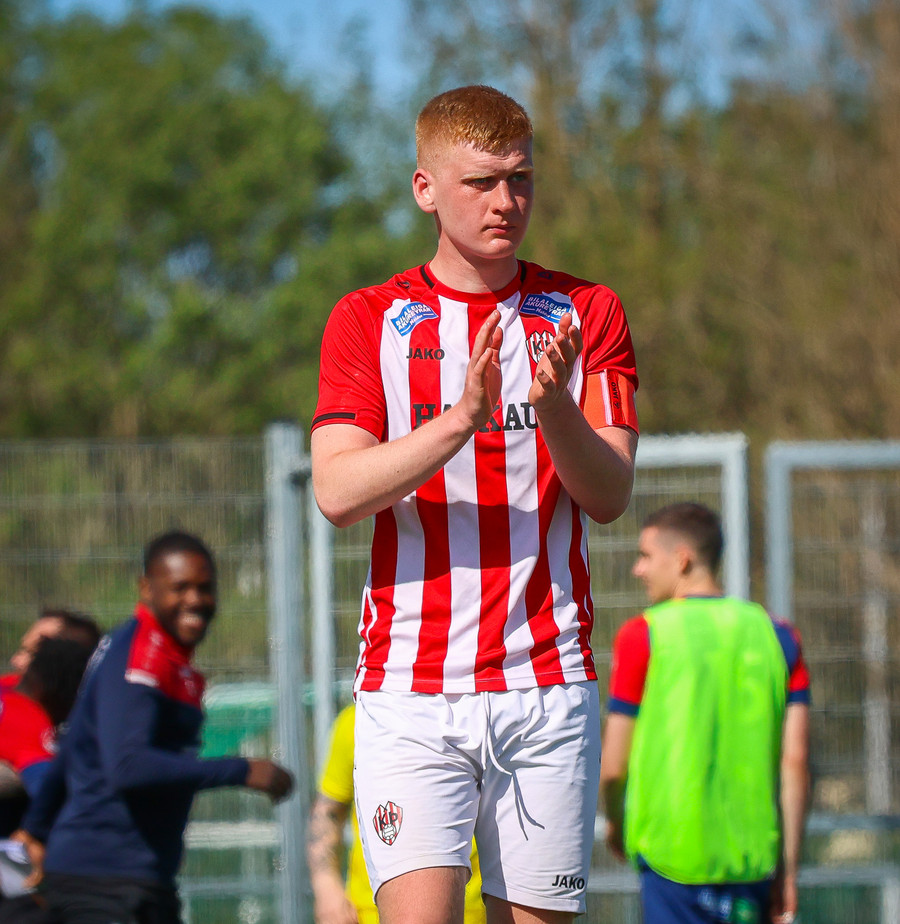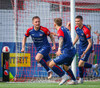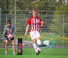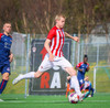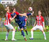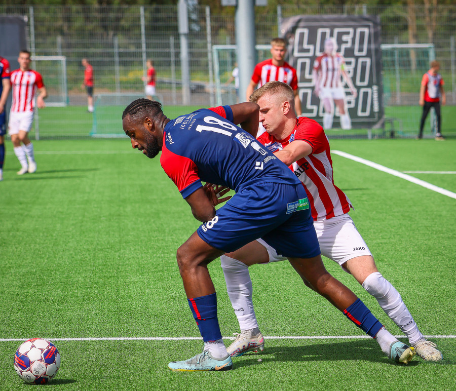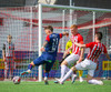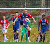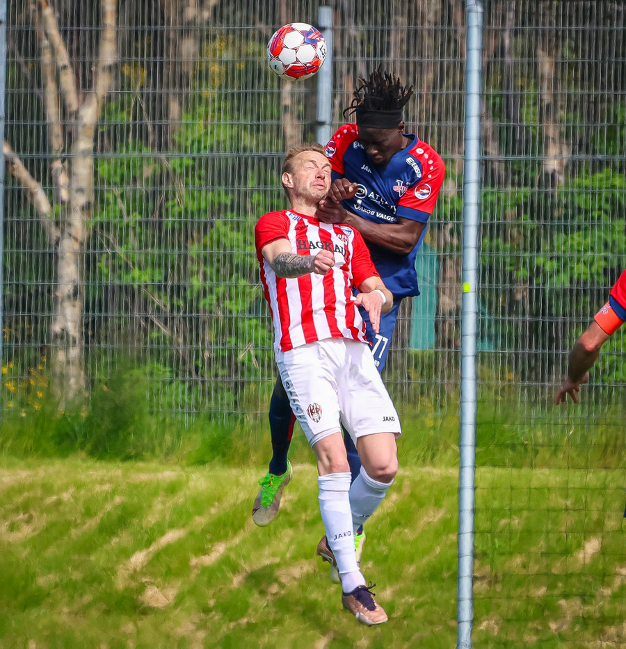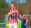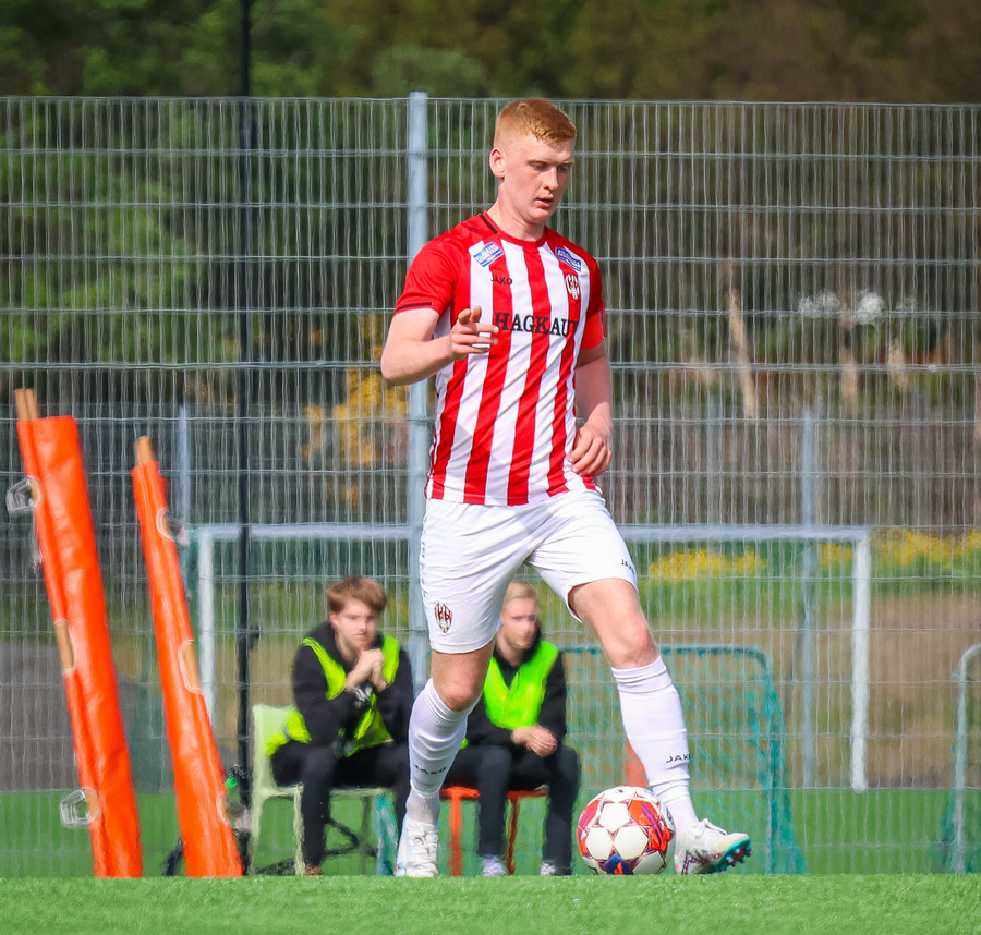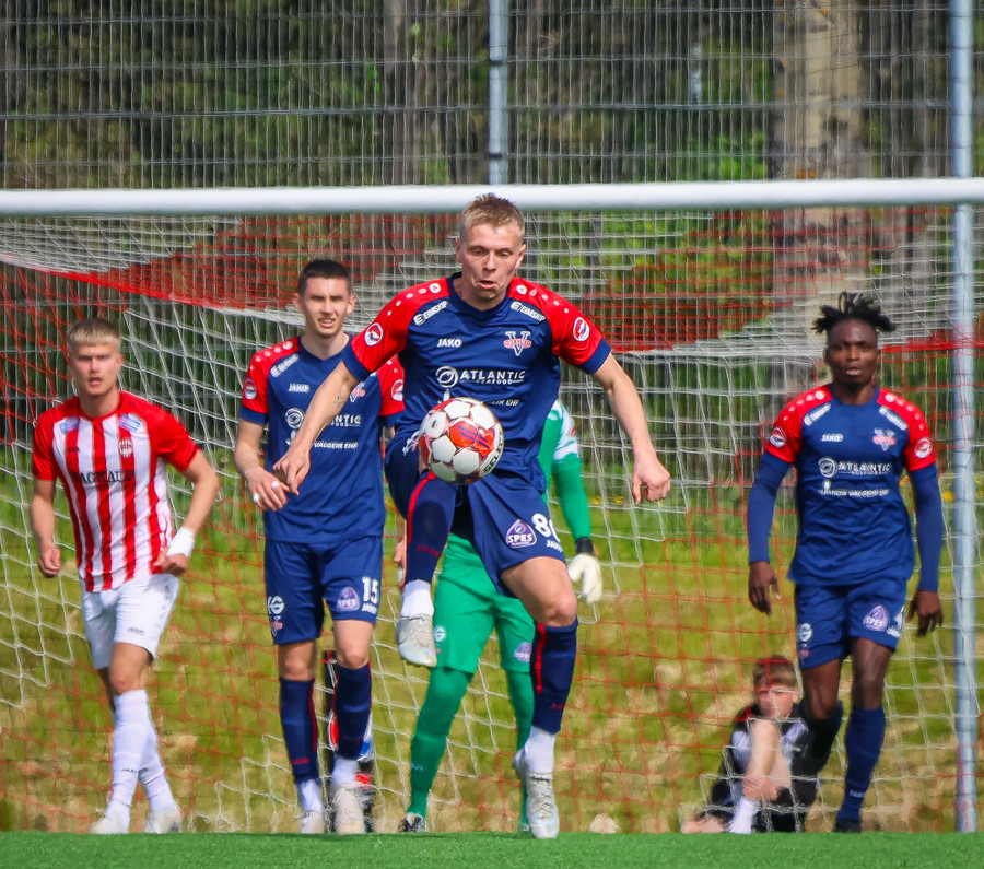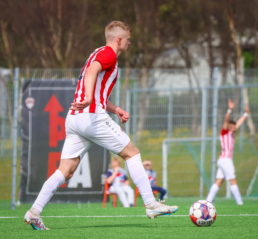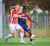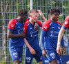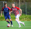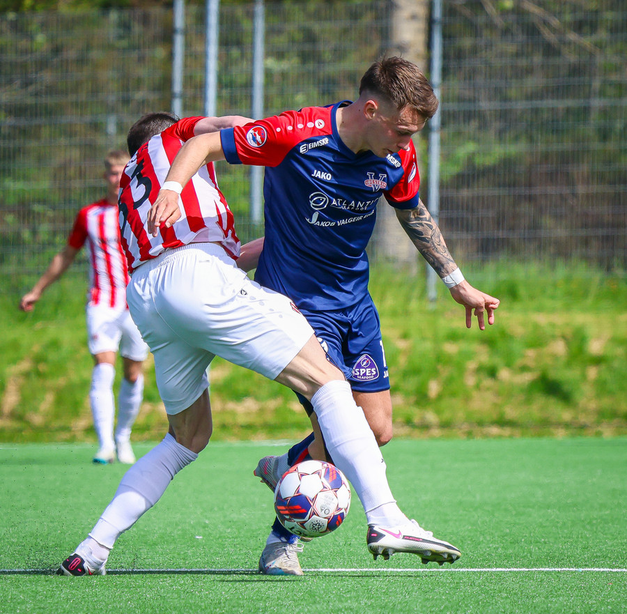 Jörgen gerir vel úti vinstra meginn leggur boltann svo út á Ágúst Karel sem kemur með gull af fyrirgjöf á fjærstöngina þar Aron Snær rís hæst og stangar þetta inn.