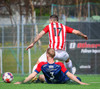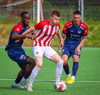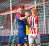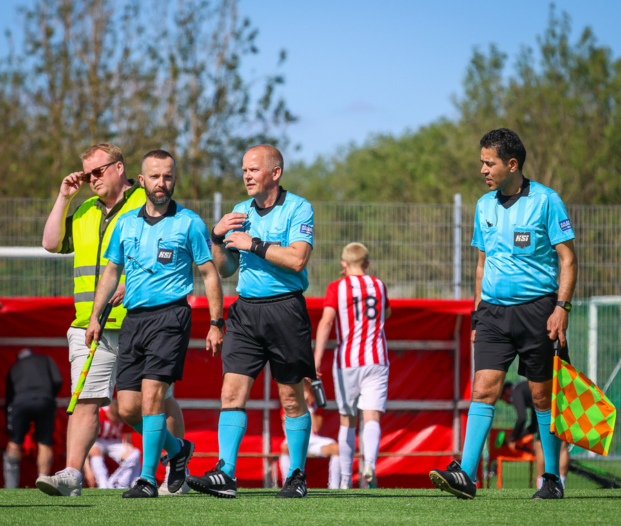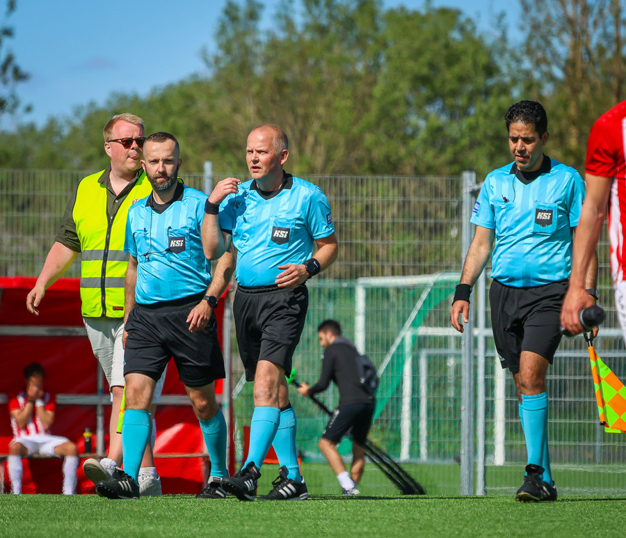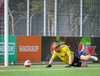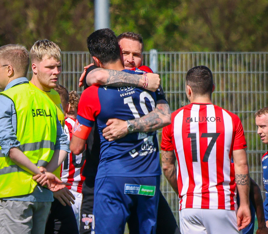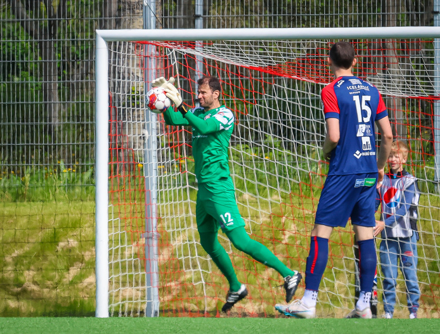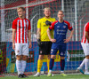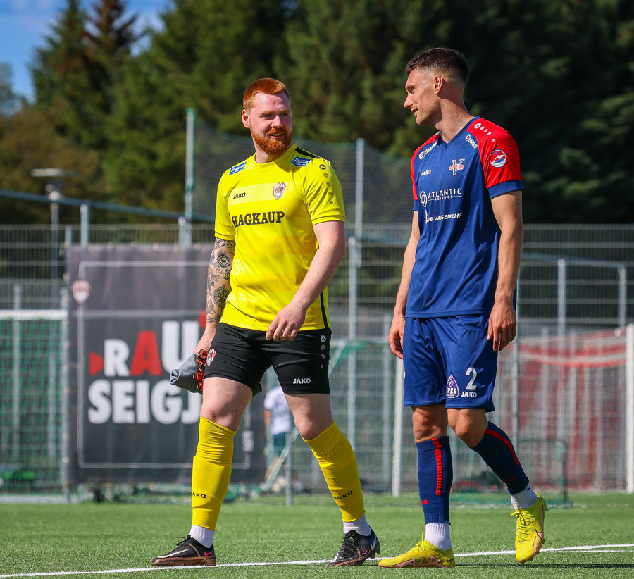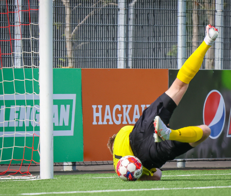 Túfa með vítið sem er slakt. Sveinn Óli ver og handsamar þetta og missir hann svo ansi klaufalega í netið. Sprellimark!