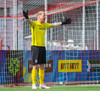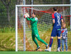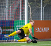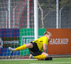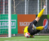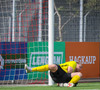Iaroshenko lætur vaða úr spyrnuna en hún hefur viðkomu í veggnum og endar í öruggum höndum Rafael.