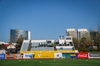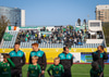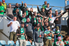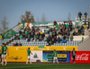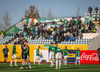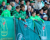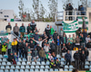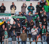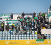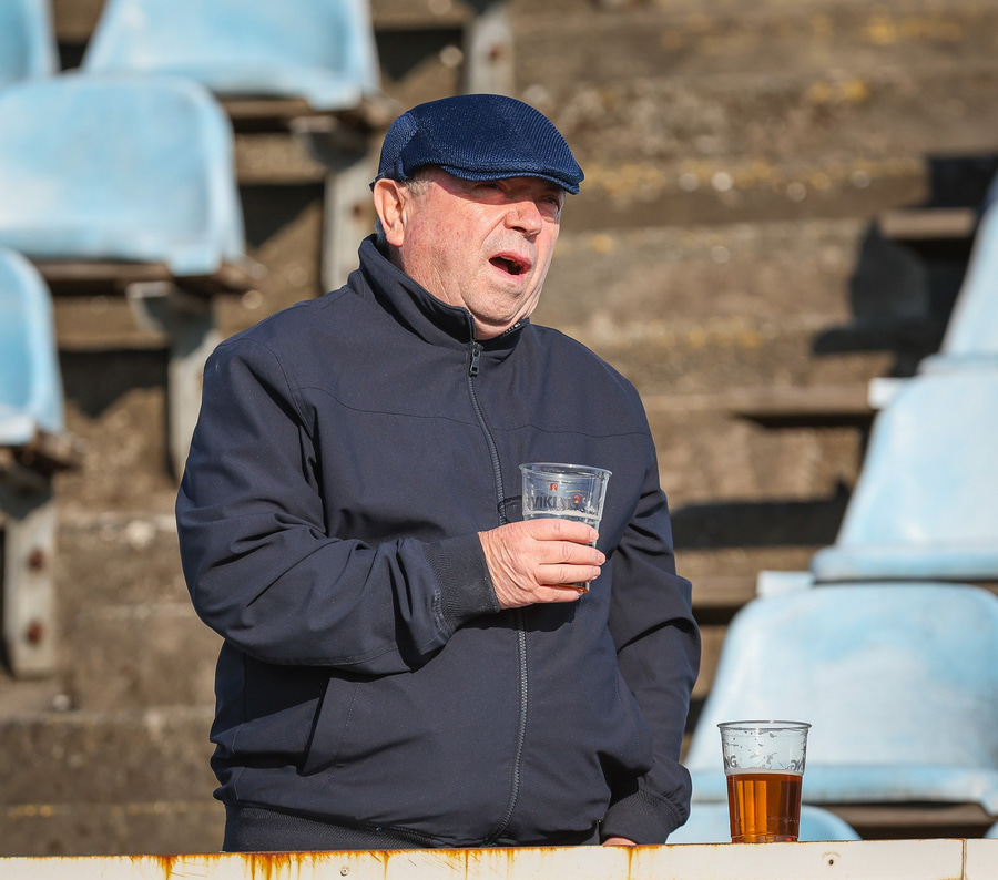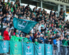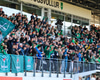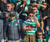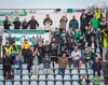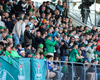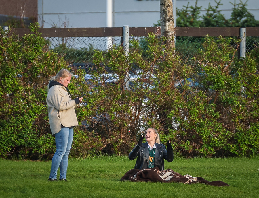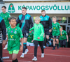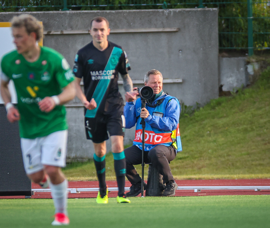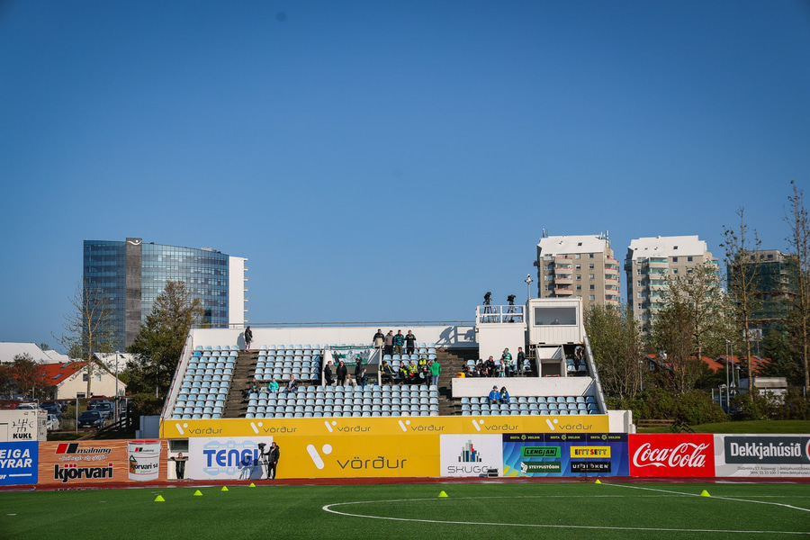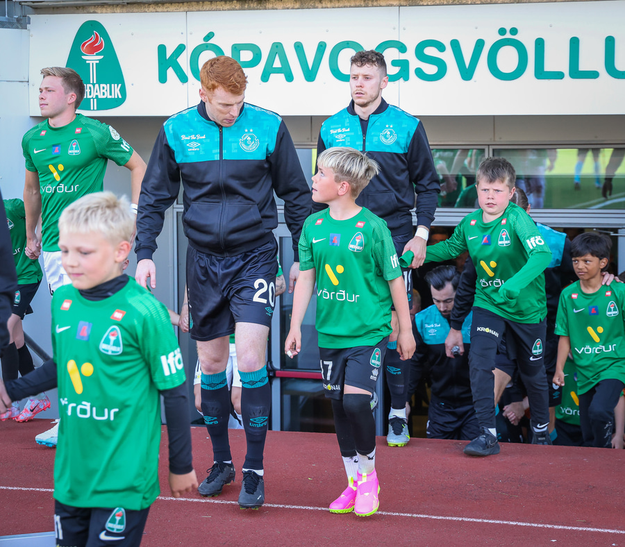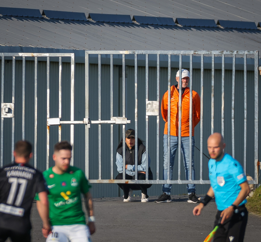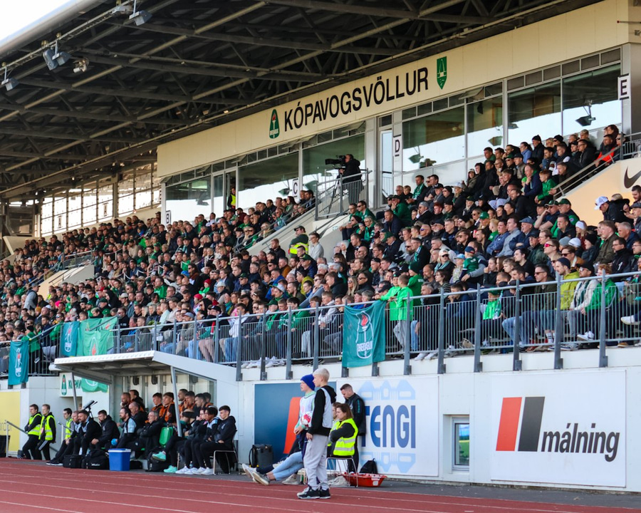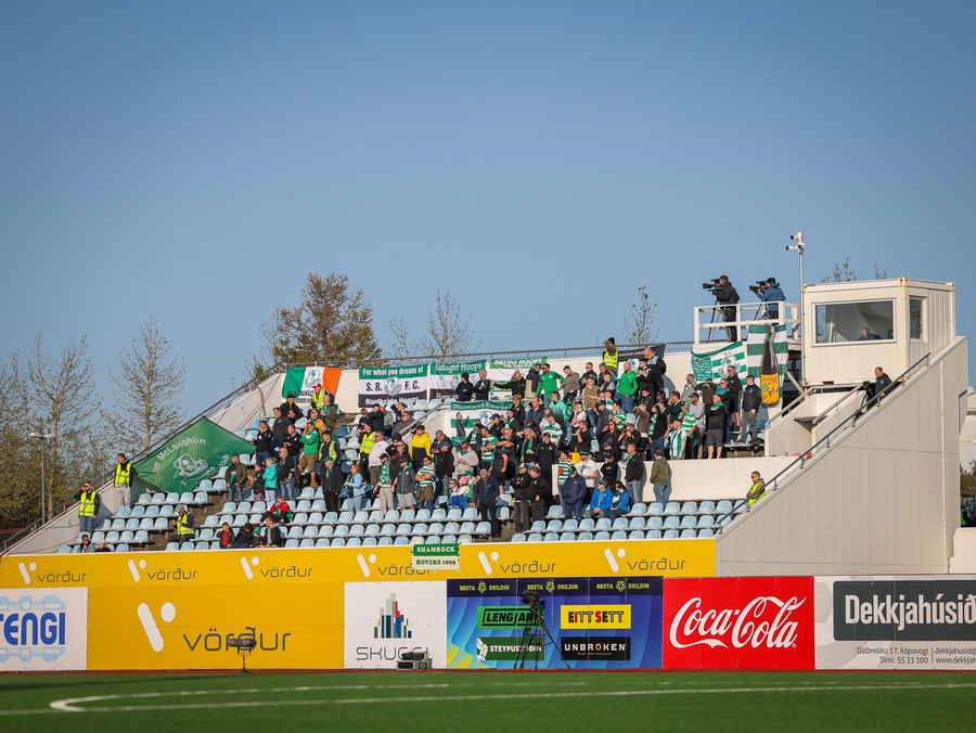 Írski blaðamaðurinn með mér í boxinu vill meina að það eru rúmir 100 stuðningsmenn Shamrock hérna á Kópavogsvelli, staðsettir í gömlu stúkunni og eru að láta vel í sér heyra