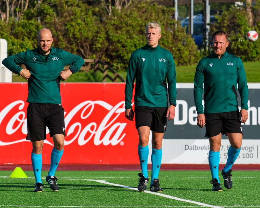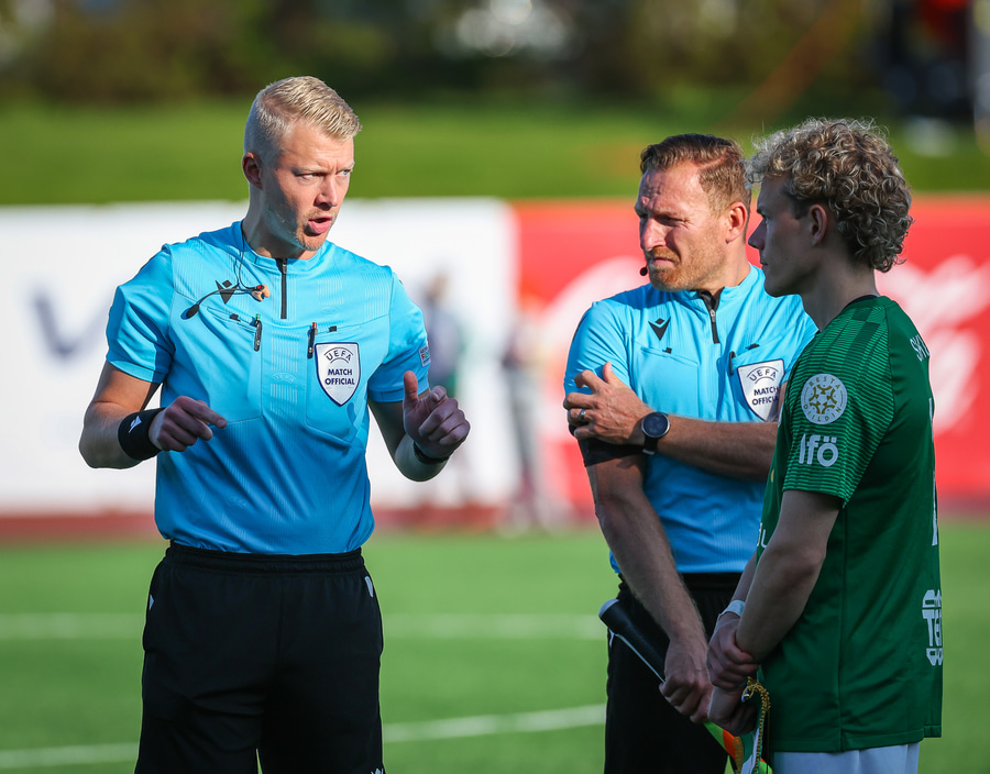 Dómari leiksins er sænskur, heitir Adam Ladebäck og er aðeins 31 árs gamall. Aðstoðardómararnir og fjórði dómarinn eru einnig frá Svíþjóð en Hollendingar sjá um VAR myndbandsdómgæsluna. Jochem Kamphuis er VAR dómari.