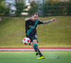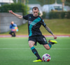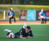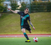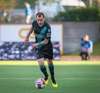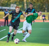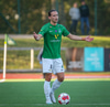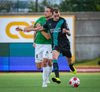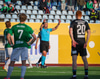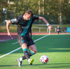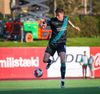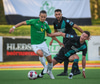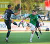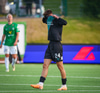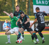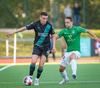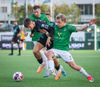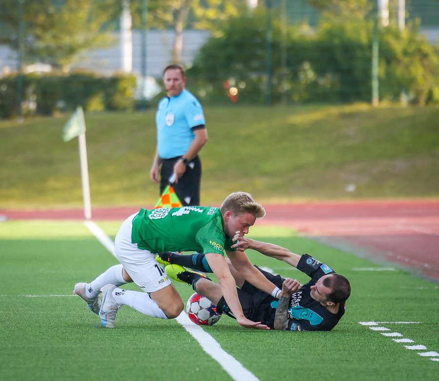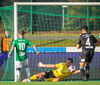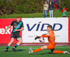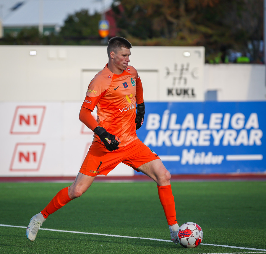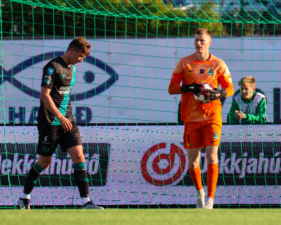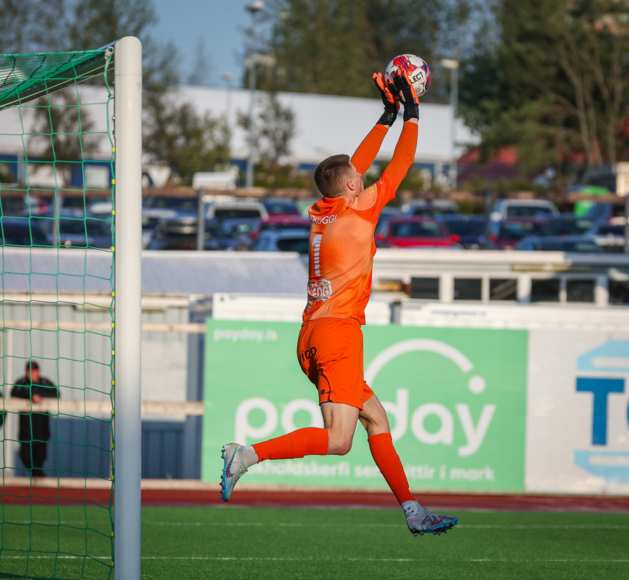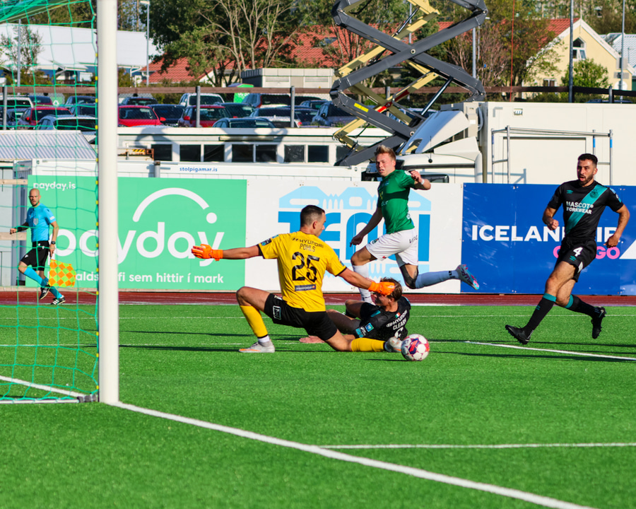 Viktor Karl reynir skot fyrir utan teig en fer af varnarmanni og í hendurnar á Pohls í markinu