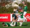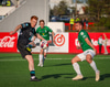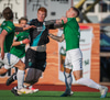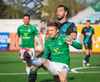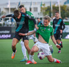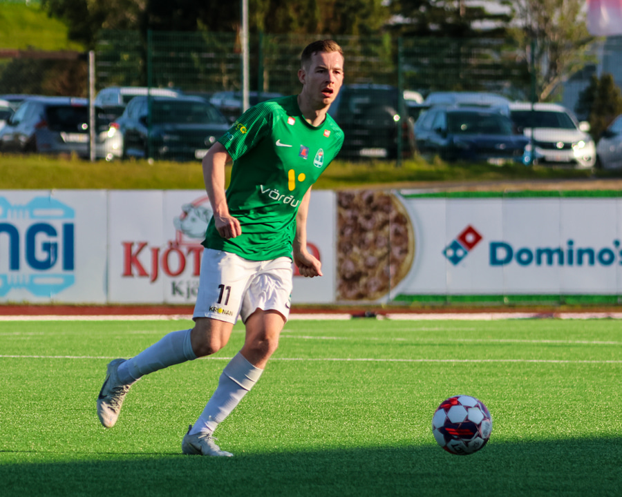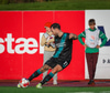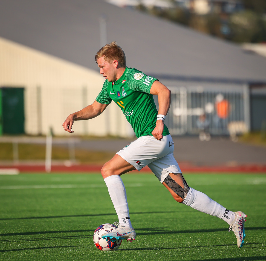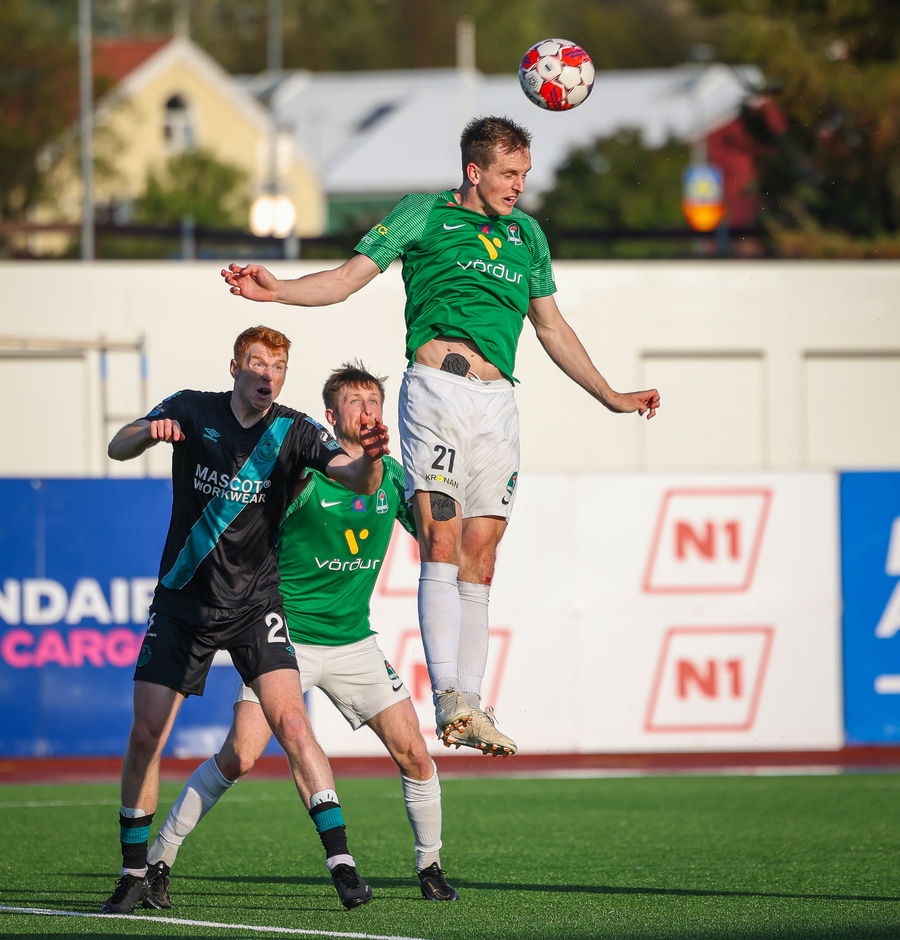 Viktor Karl með mjög skemmtilega takta á vinstri vængnum og skemmtir áhorfendum en er á endanum stöðvaður af þeim írsku